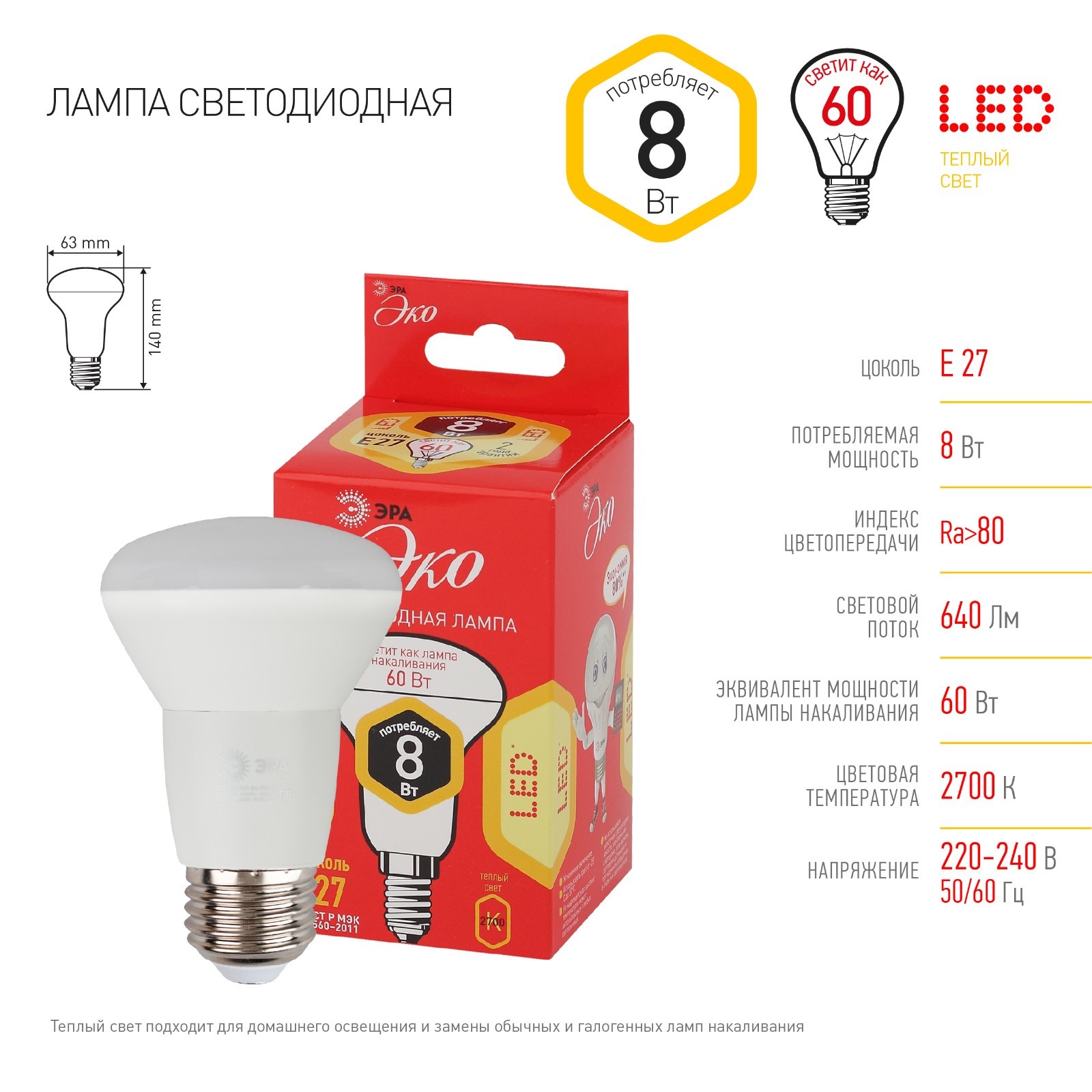 Лампа светодиодная эра Red Line «рефлектор», 8 вт, E27, 640 лм, 2700к, свечение тёплое белое