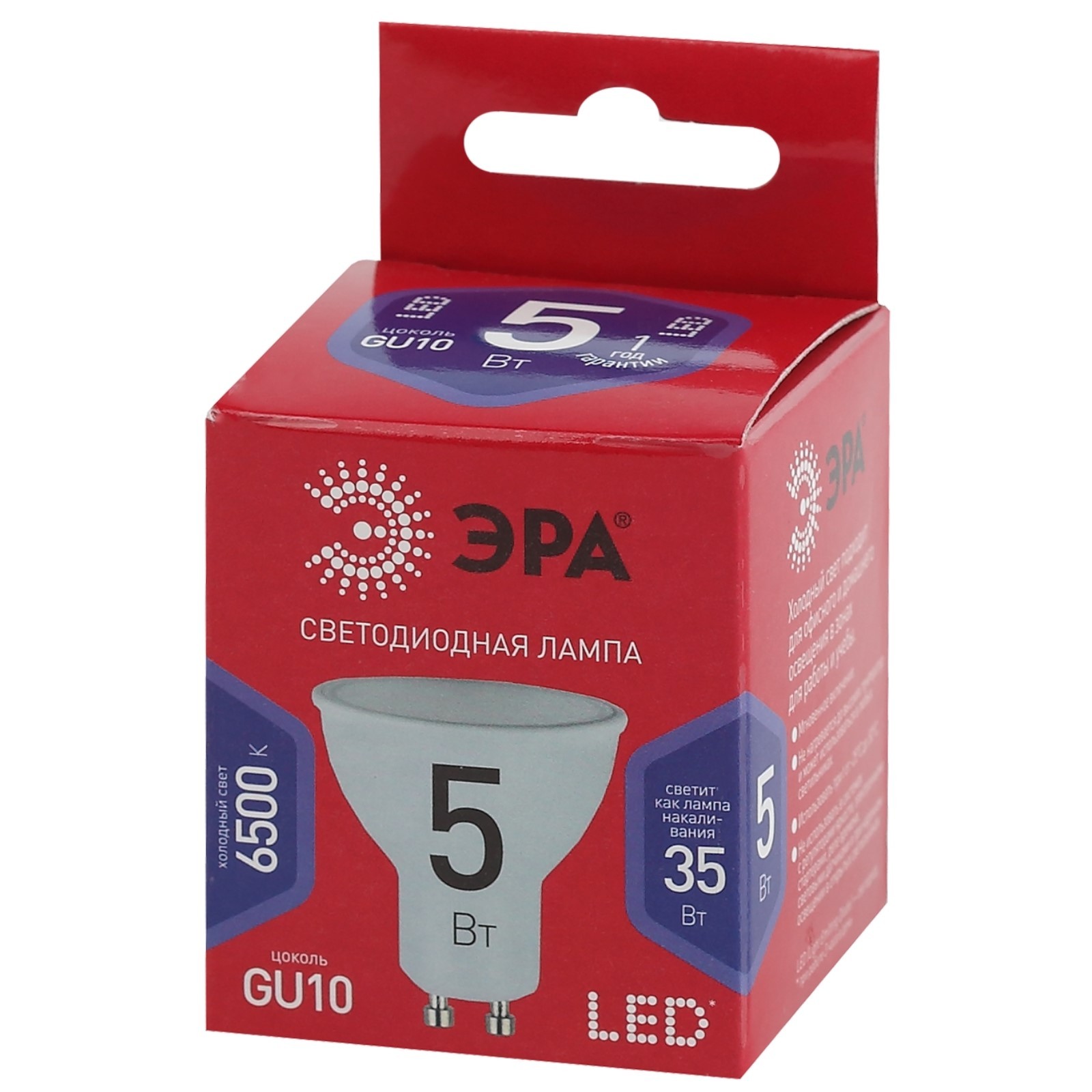 Лампа светодиодная эра Red Line «софит», 5 вт, Gu10, 400 лм, 6500к, свечение холодное белое