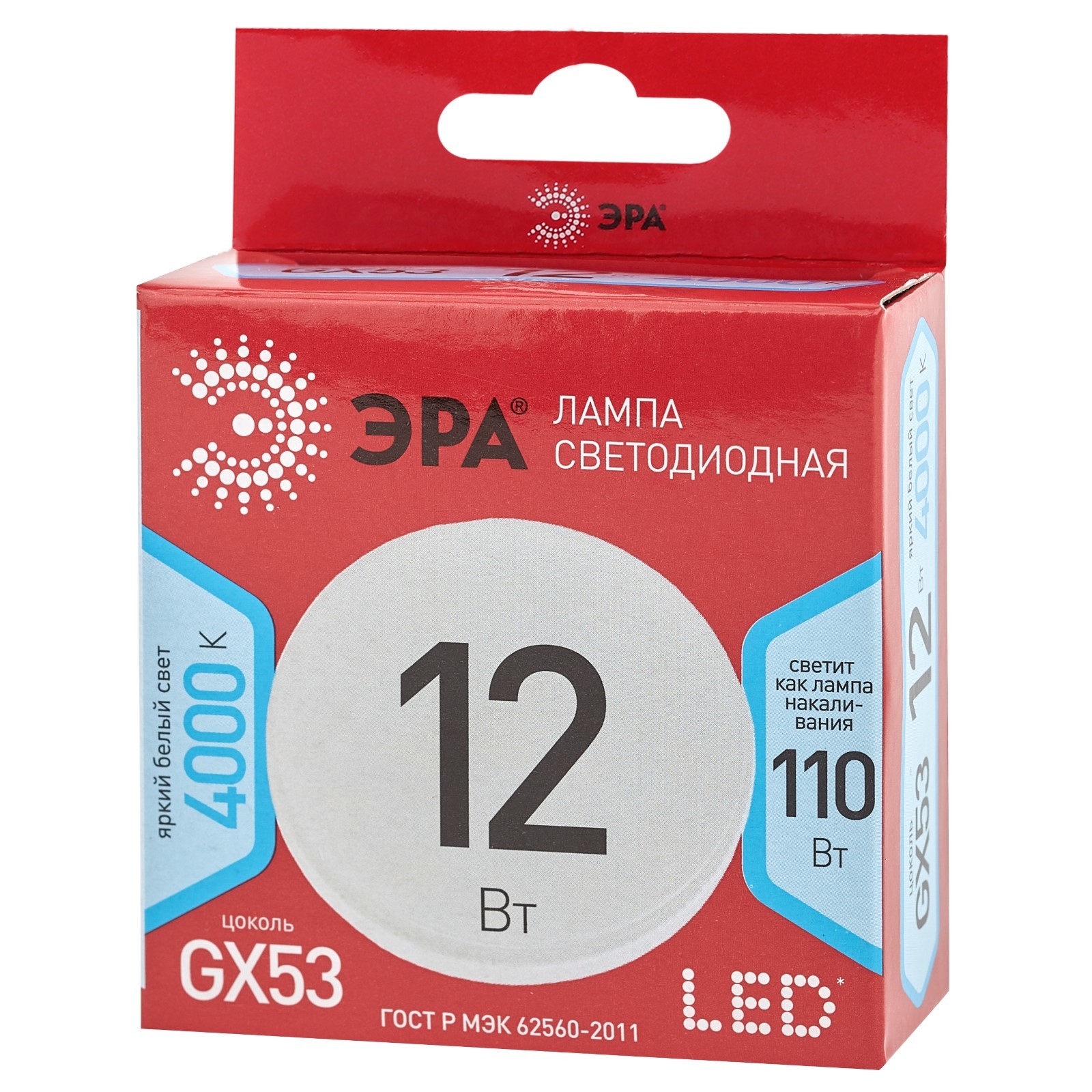 Лампа светодиодная эра red line «таблетка», 12 вт, gx53, 960 лм, 4000к, свечение белое.