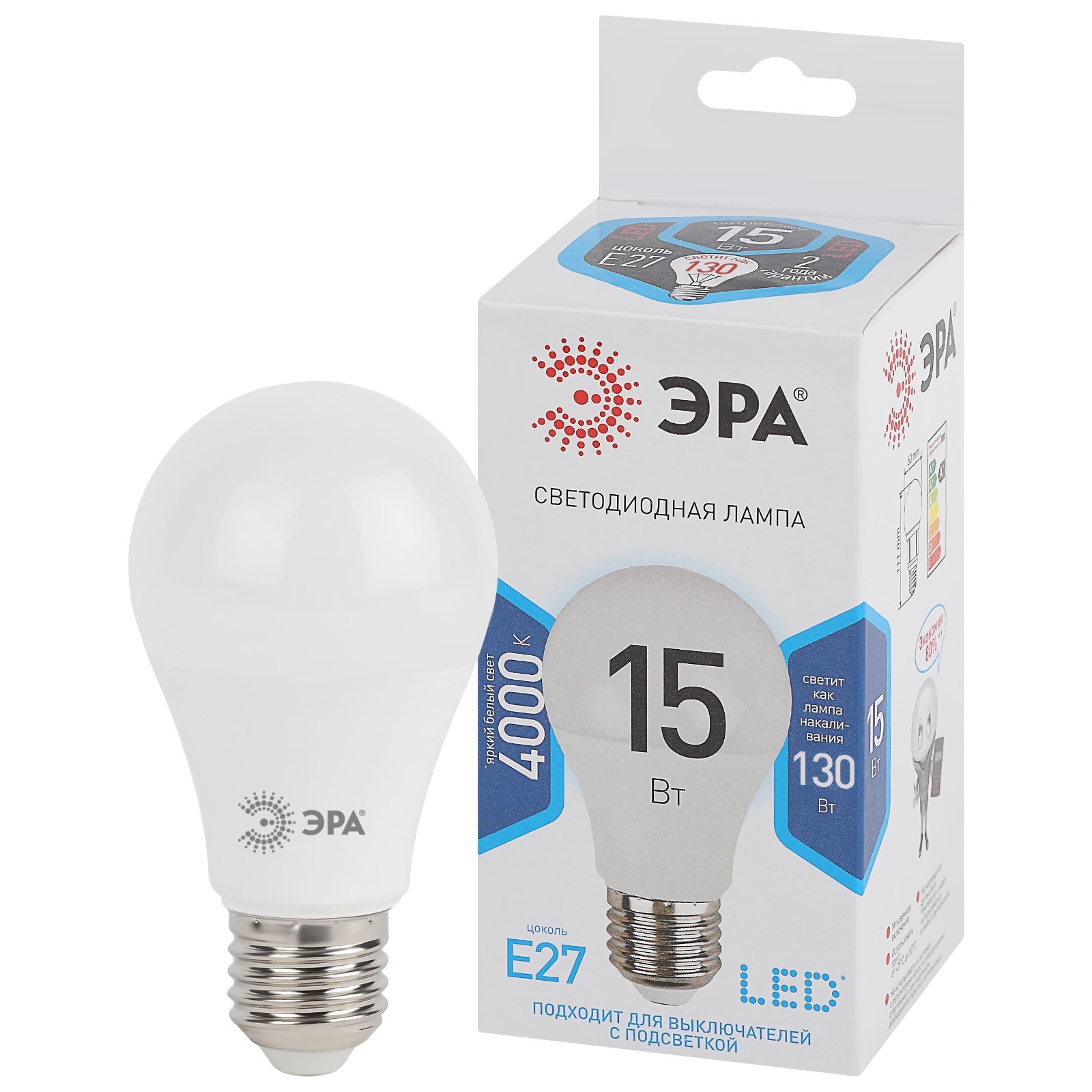Лампа светодиодная эра Standard «груша», 15 вт, е27, 1200 лм, 4000к, свечение белое