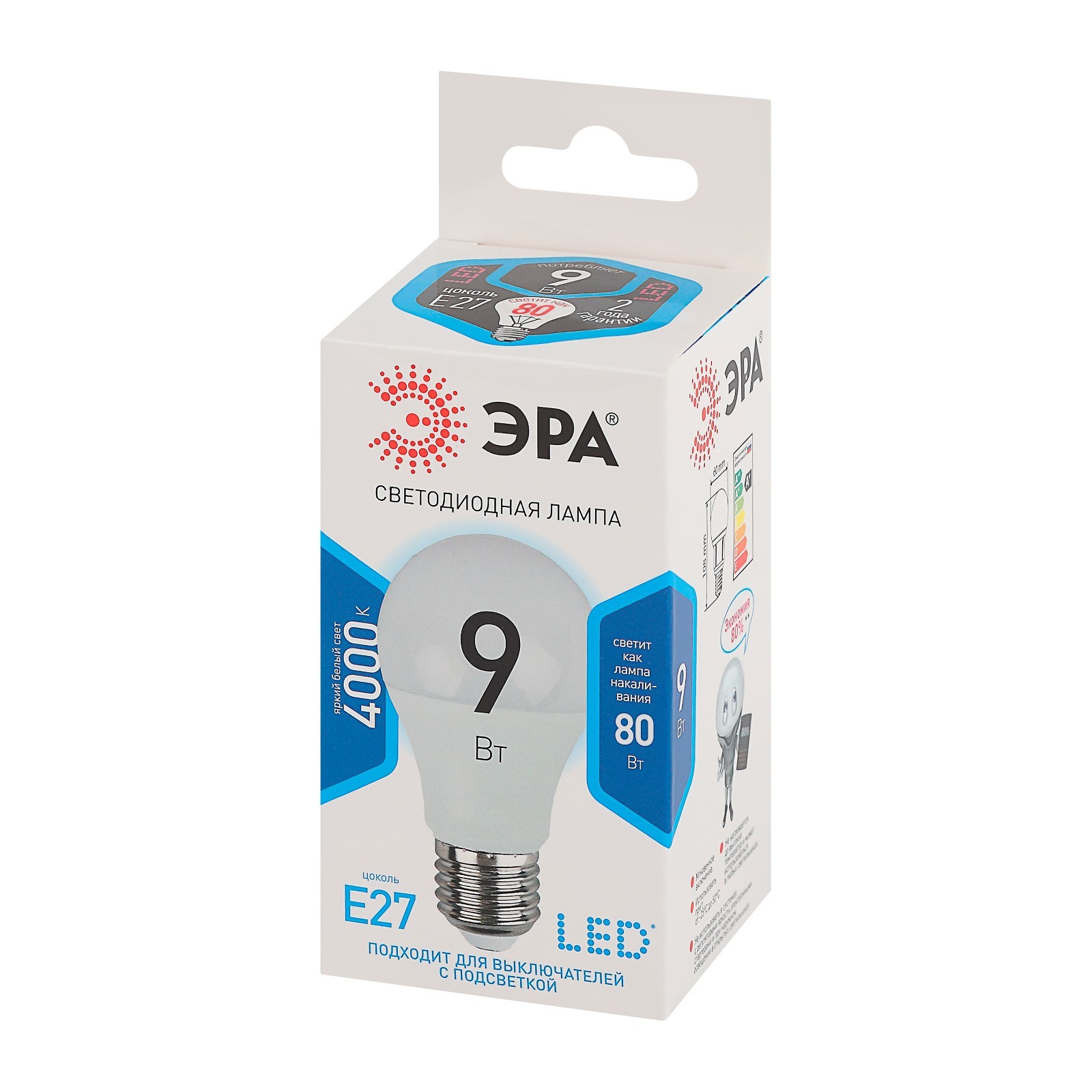 Лампа светодиодная эра standard «груша», 9 вт, e27, 720 лм, 4000к, свечение белое.