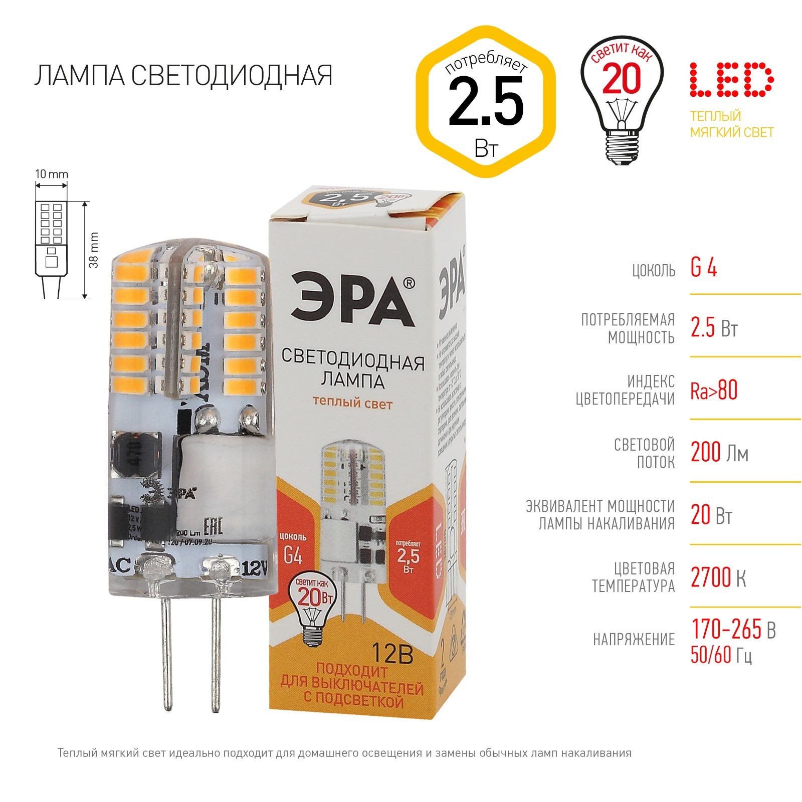 Лампа светодиодная эра Standard «капсула», 2.5 вт, G4, 200 лм, 2700к, свечение тёплое белое