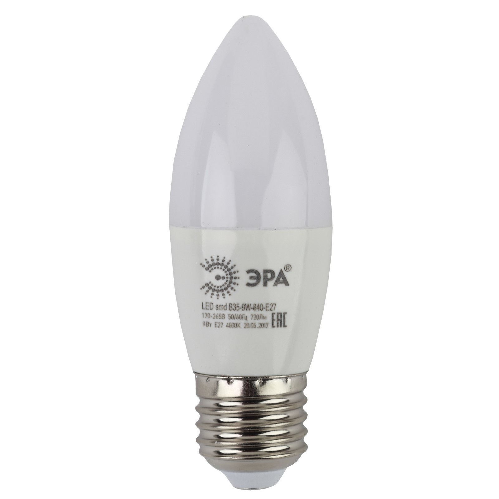 Лампа светодиодная эра Standard «свеча», 9 вт, е27, 720 лм, 4000к, свечение белое
