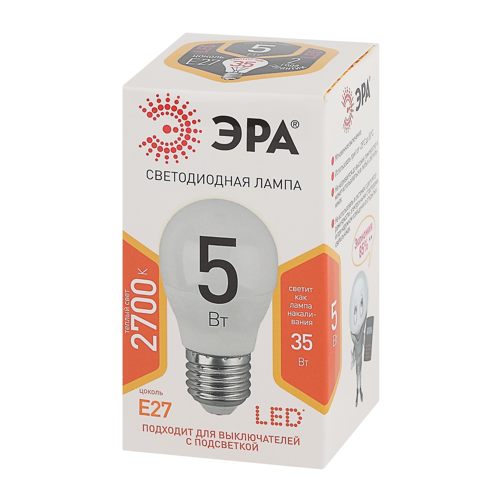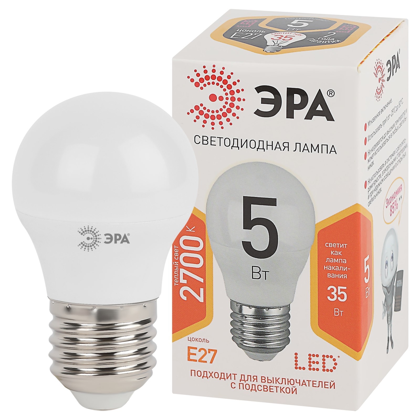 Лампа светодиодная эра Standard «шар», 5 вт, е27, 400 лм, 2700к, свечение тёплое белое
