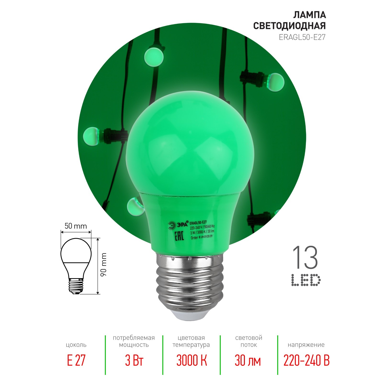 Лампа светодиодная эра белт «груша», 3 вт, е27, 30 лм, 3000к, свечение тёплое белое