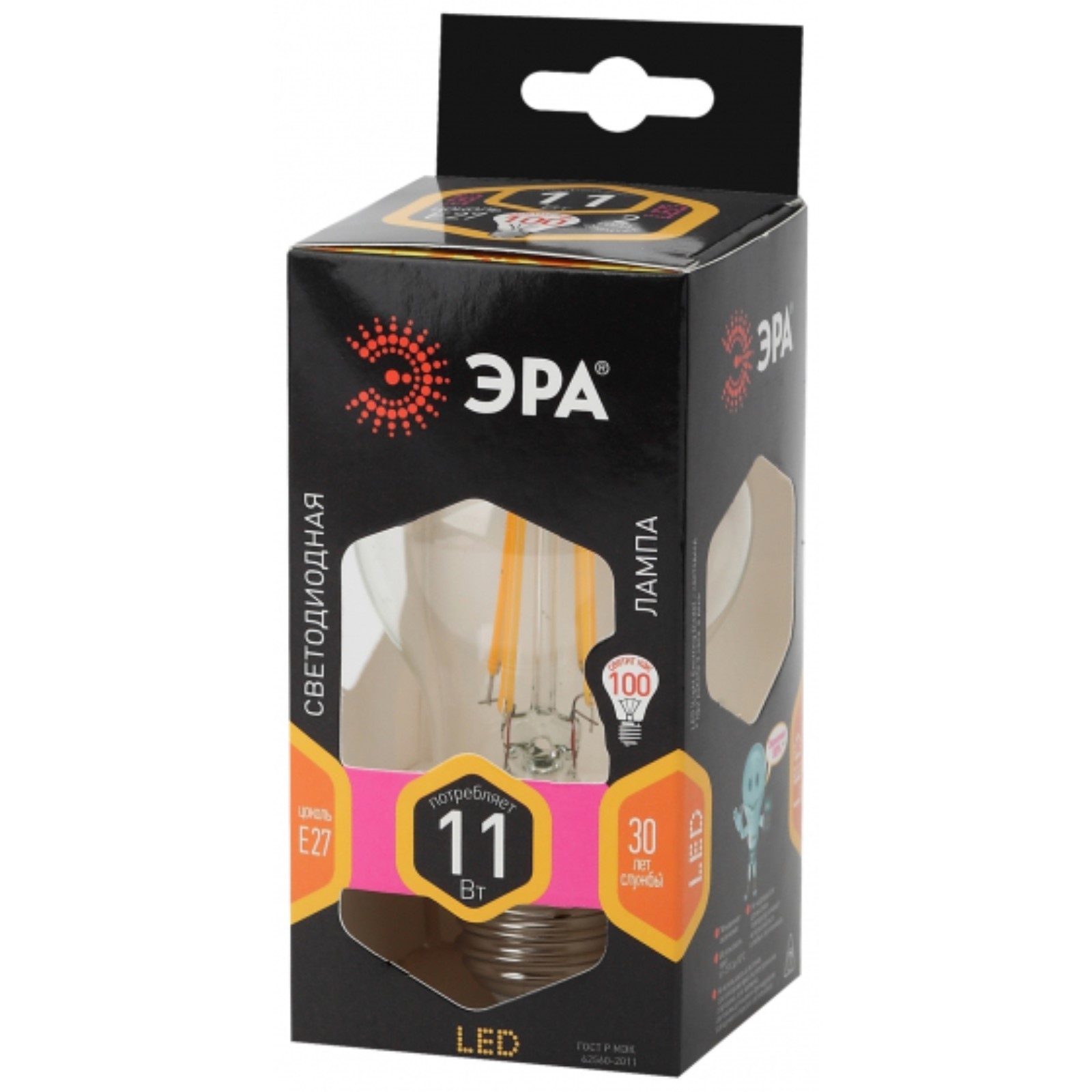 Лампа филаментная эра «груша», 11 вт, е27, 1430 лм, 2700к, свечение тёплое белое