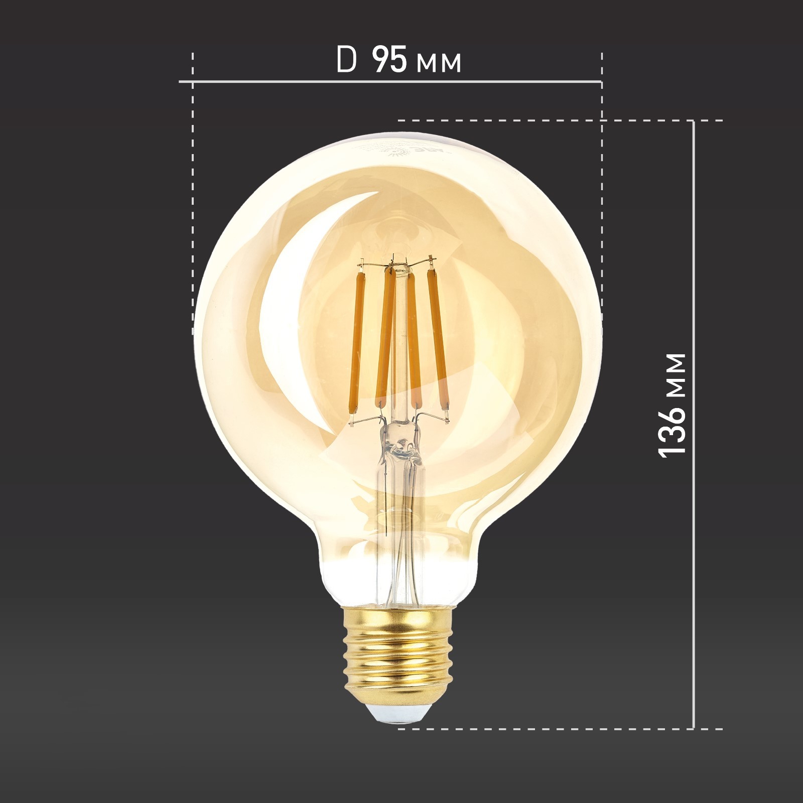 Лампа филаментная эра «шар», 7 вт, е27, 910 лм, 2400к, свечение тёплое белое