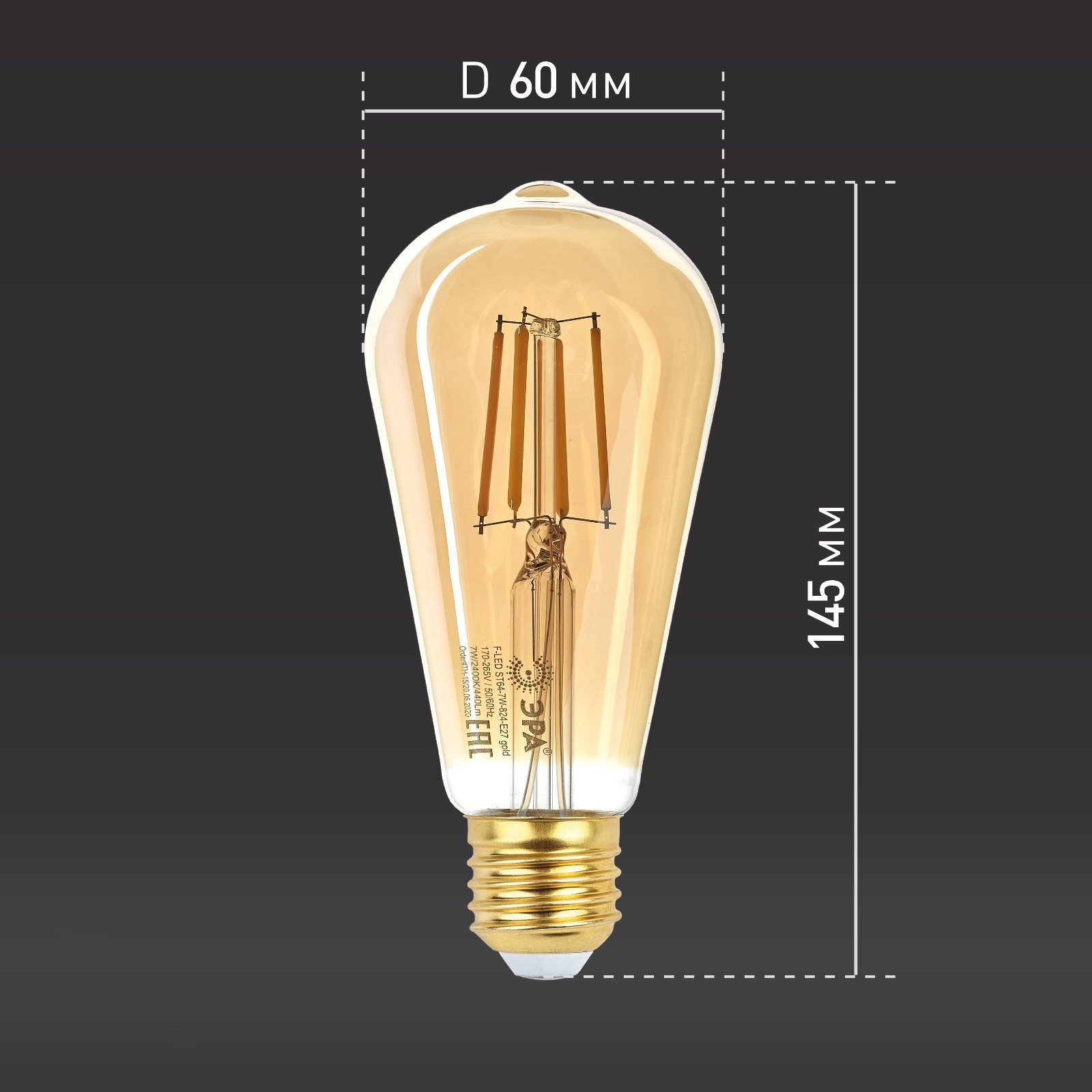 Лампа филаментная эра «груша», 7 вт, е27, 910 лм, 2400к, свечение тёплое белое