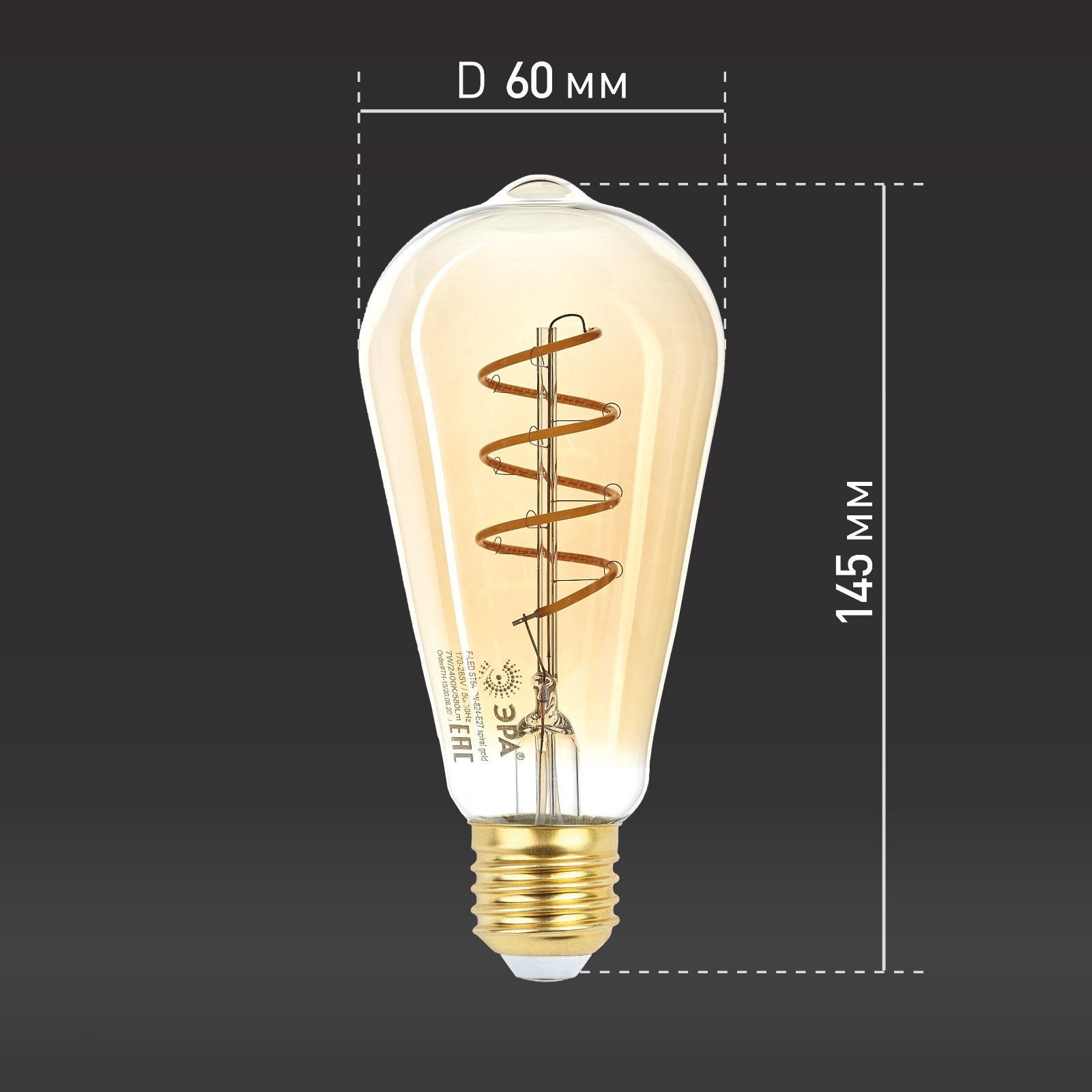 Лампа филаментная эра «груша», 7 вт, е27, 910 лм, 2400к, свечение тёплое белое
