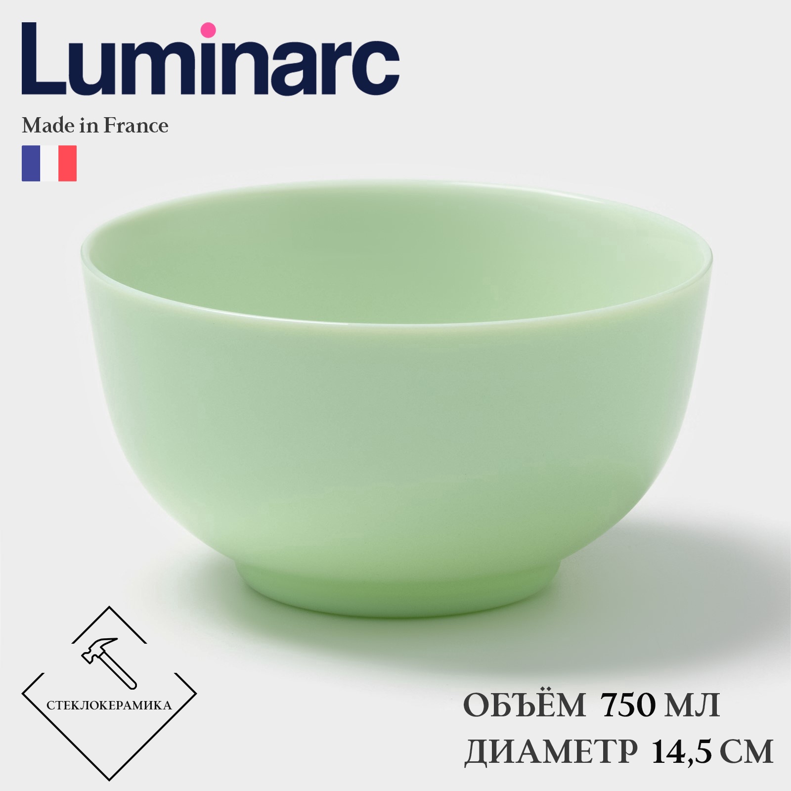 Салатник Luminarc Diwali Paradise Green, 750 мл, D=14.5 см, стеклокерамика, светло-зеленый