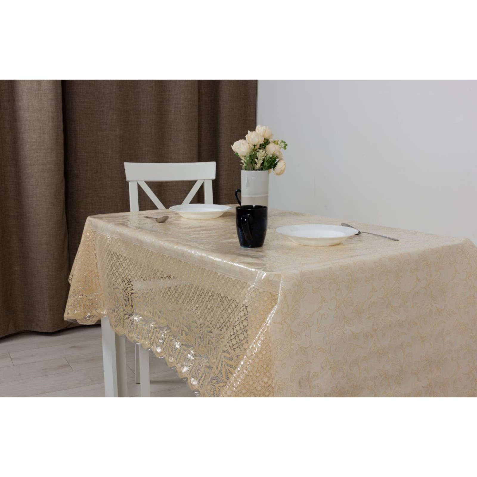 Клеёнка Joy Home, ажурная, без основы, 137 см, 20 м, бежевый