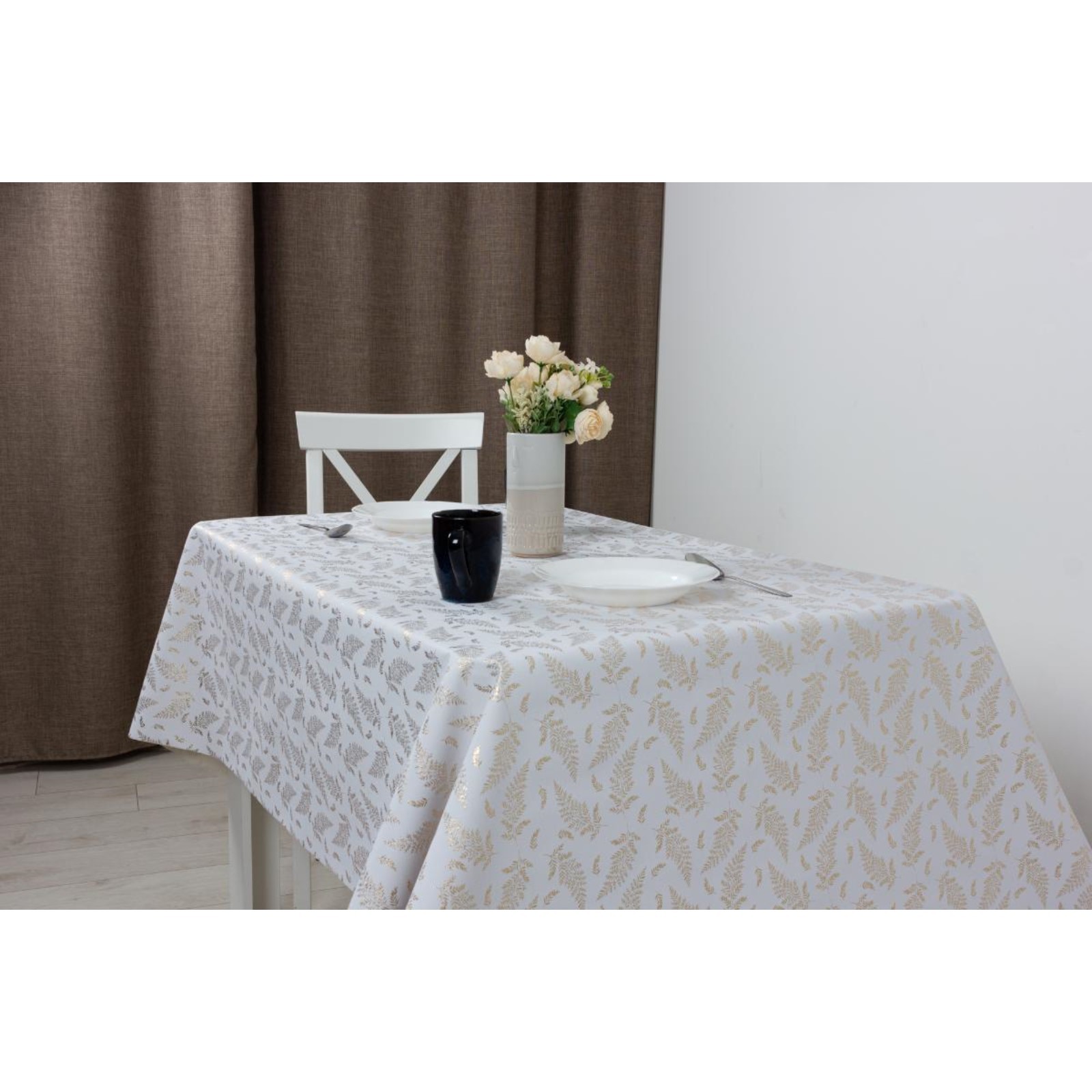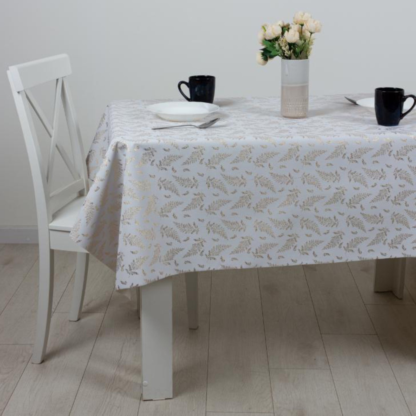Клеёнка «папоротник» Joy Home, 140 см, 20 м, золото на белом