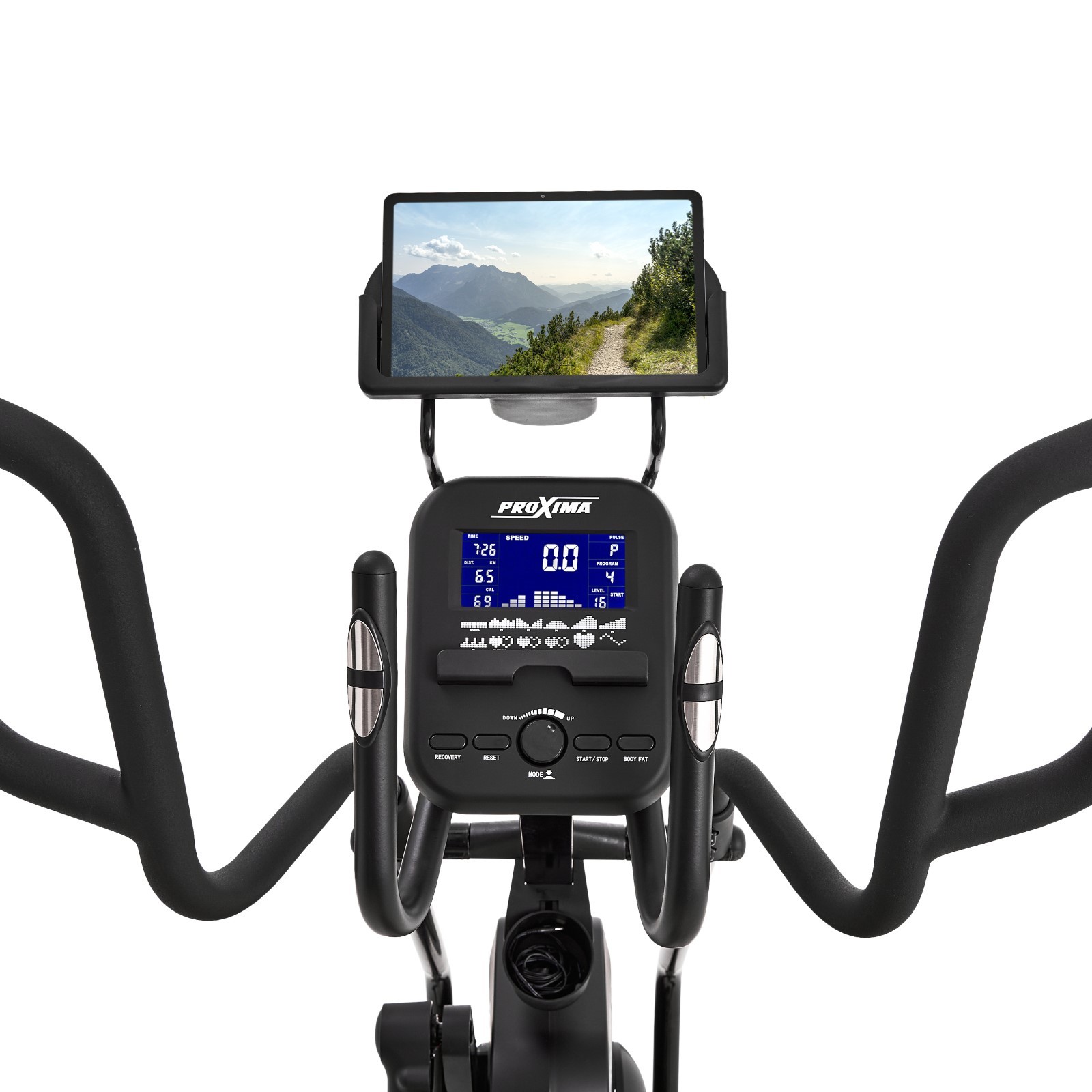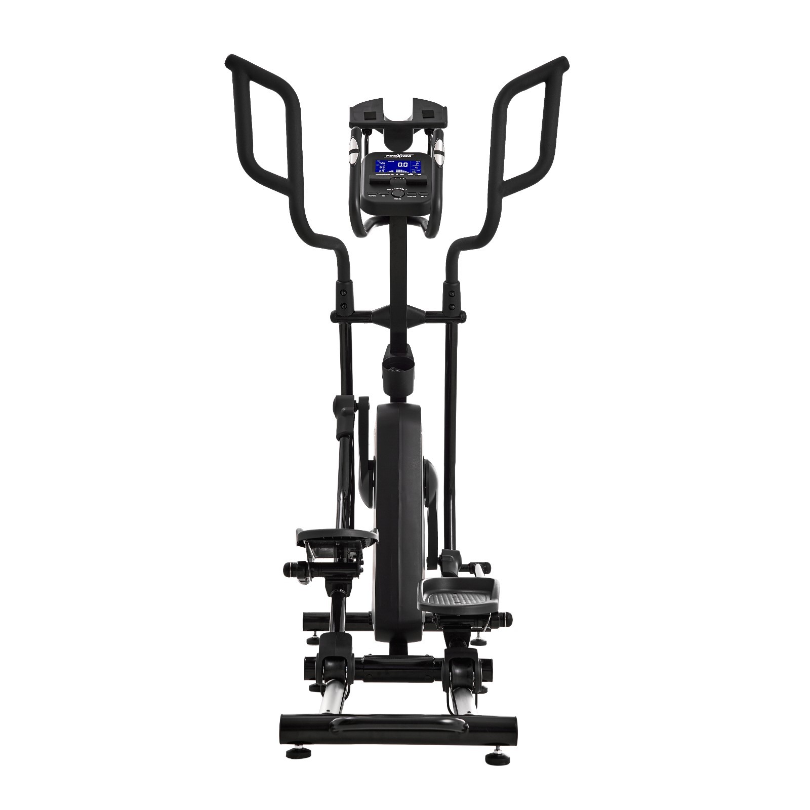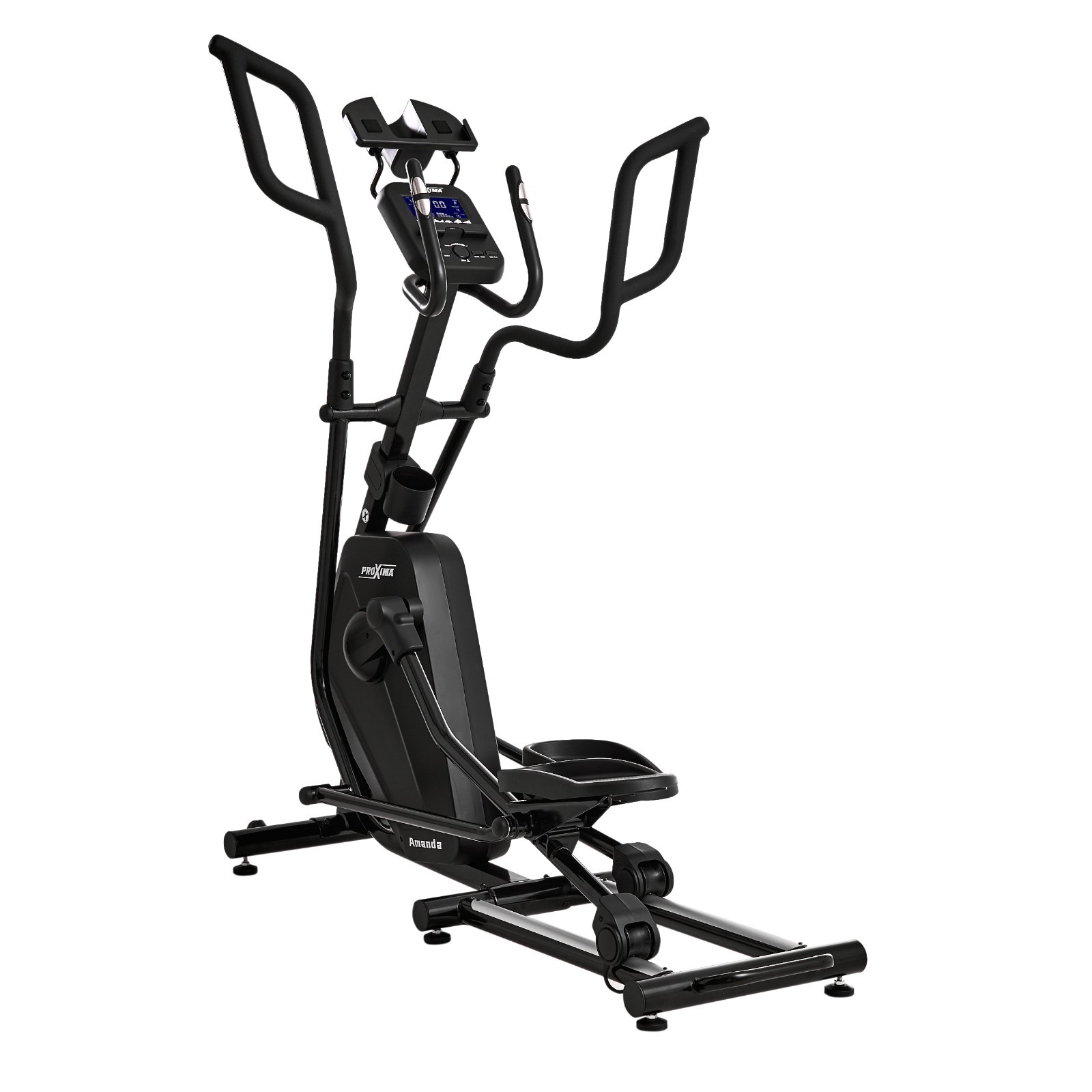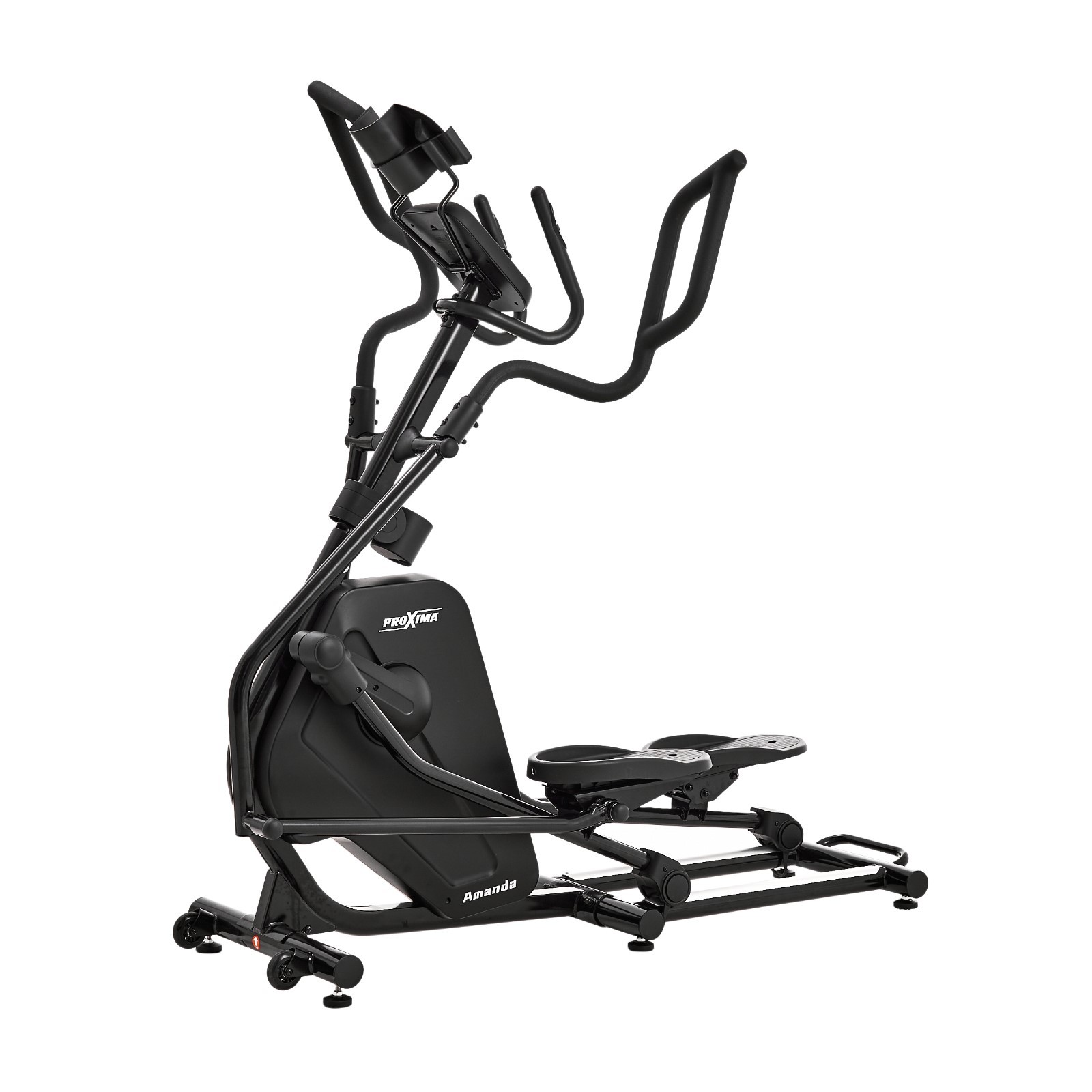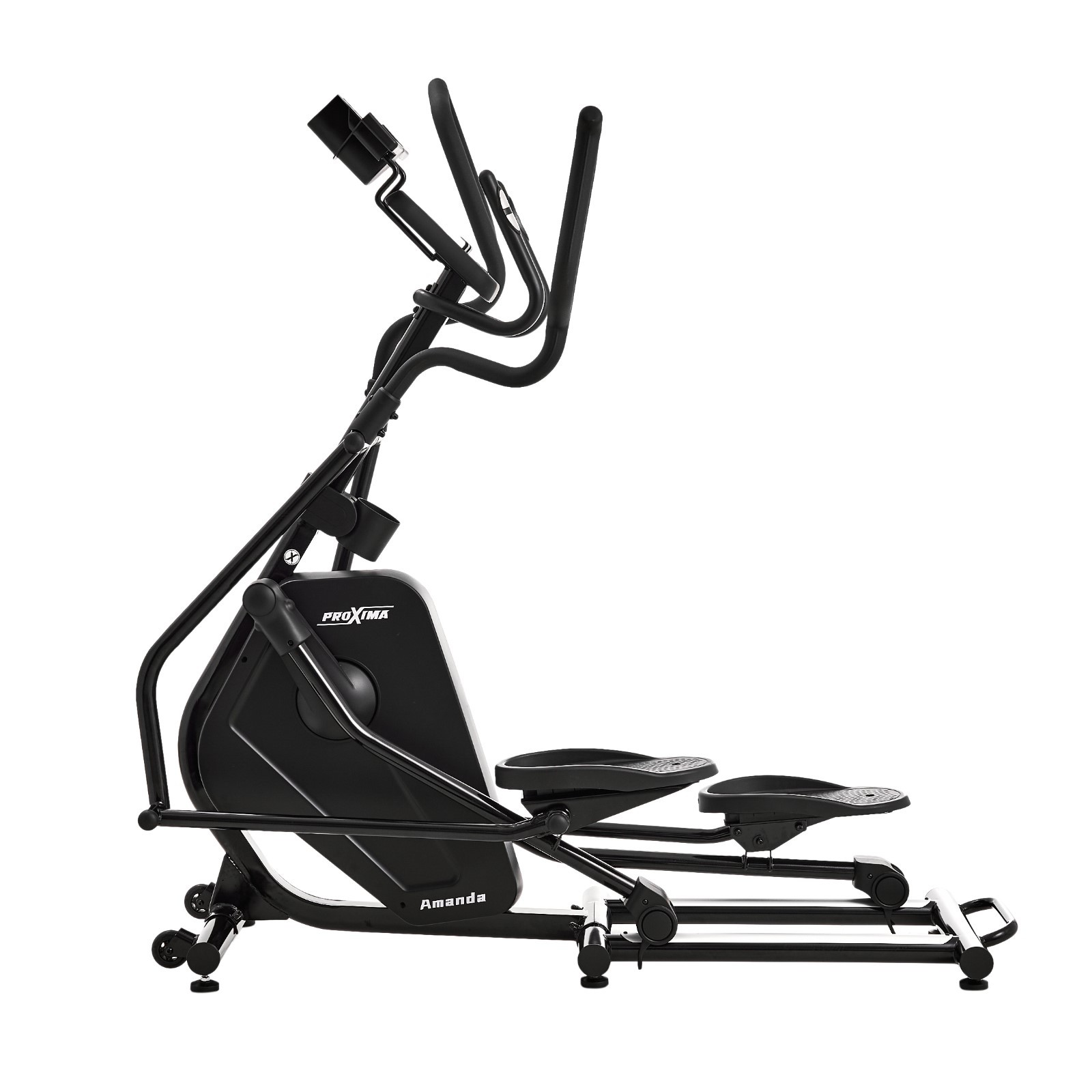 Эллиптический тренажёр proxima, amanda prel-516. Эллиптический тренажёр Proxima Amanda является бюджетной версией переднеприводного эллиптического тренажёра с увеличенной длиной шага. Несмотря на его бюджетную стоимость, эллиптический тренажёр имеет все необходимые базовые функции для эффективных тренировок. Как упоминалось ранее, тренажёр имеет оптимальную длину шага - 50 см, это позволяет комфортно тренироваться с пользователем среднего и выше среднего роста. Максимальная нагрузка на конструкцию составляет 130 кг. Кроме того, расстояние между педалями (Q фактор) составляет 10 см, то есть положение стоп при тренировке приближено к естественному шагу. Также тренажёр будет интересен пользователям и с хорошей физической подготовкой, так как обладает 32 уровнями сопротивления, регулируемых с консоли тумблером. Плавный ход обеспечивается подшипниками во всех сочленениях, а также сбалансированностью конструкции тренажёра. Также стоит отметить усиленный держатель планшета и бутылки для воды. Держатель расположен на комфортной высоте и будет удобен для просмотра различных видео файлов. Данный тренажёр отличается продуманной конструкцией рукояток, что подойдёт пользователям различной комплекции. Кроме того, меняя положения рук на рукоятках можно равномерно распределить нагрузку на весь плечевой пояс. Консоль имеет LCD дисплей размером 129 х 61 мм, это позволит отслеживать все показатели тренировки и управлять тренажёром без каких-то усилий. Общий размер консоли составляет 270 х 218 мм. Тренажёр оснащен транспортировочными роликами и компенсаторами неровности пола. Складная конструкция: Да Максимально допустимый вес, кг: 130 Вид: Эллипсоид Тип: Электрический Назначение: Для дома Назначение: Для зала  развернуть описание ▼