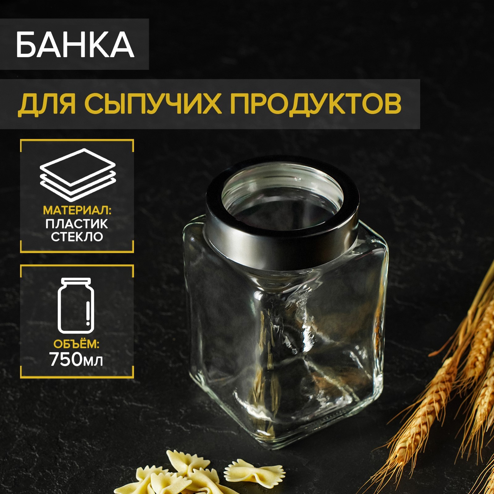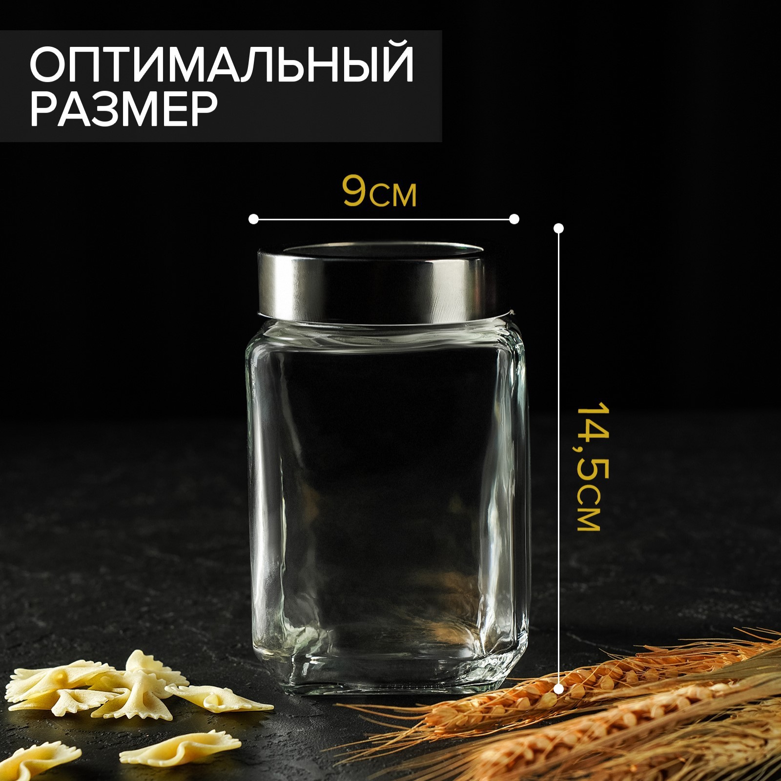 Банка стеклянная для сыпучих продуктов с металлической крышкой «призма», 750 мл, 9x14,5 см