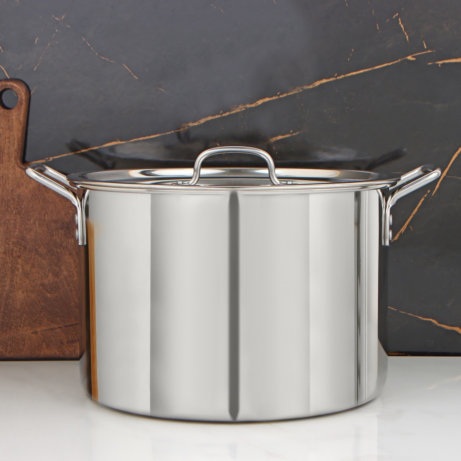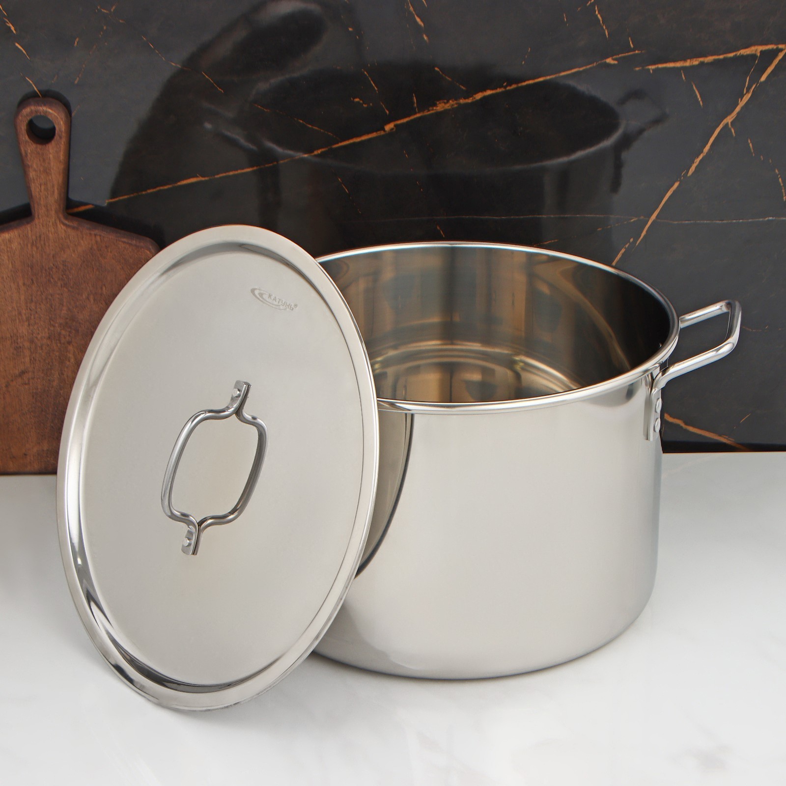Кастрюля «общепит», 20 л, D=35 см, H=23 см, металлическая крышка, клёпаные ручки