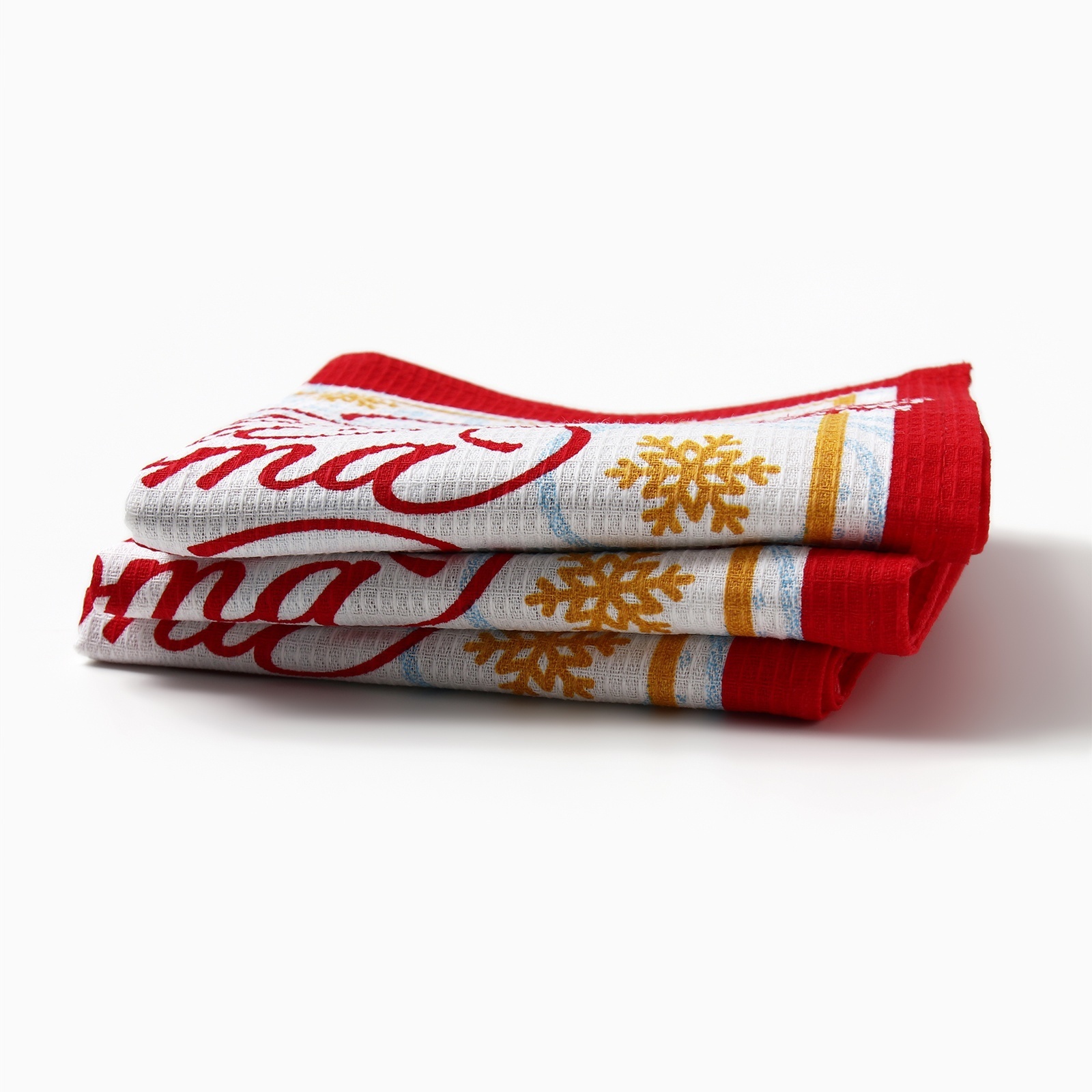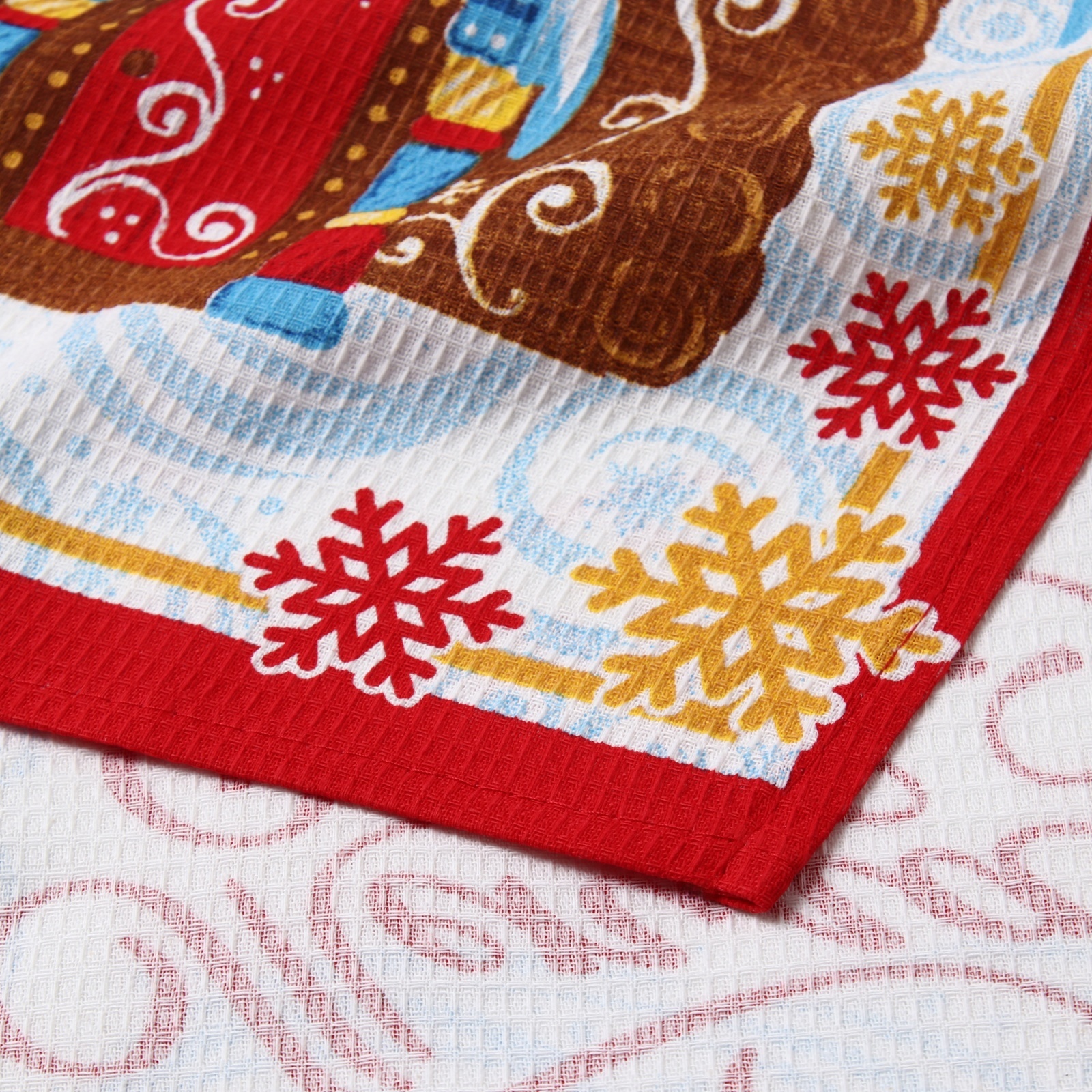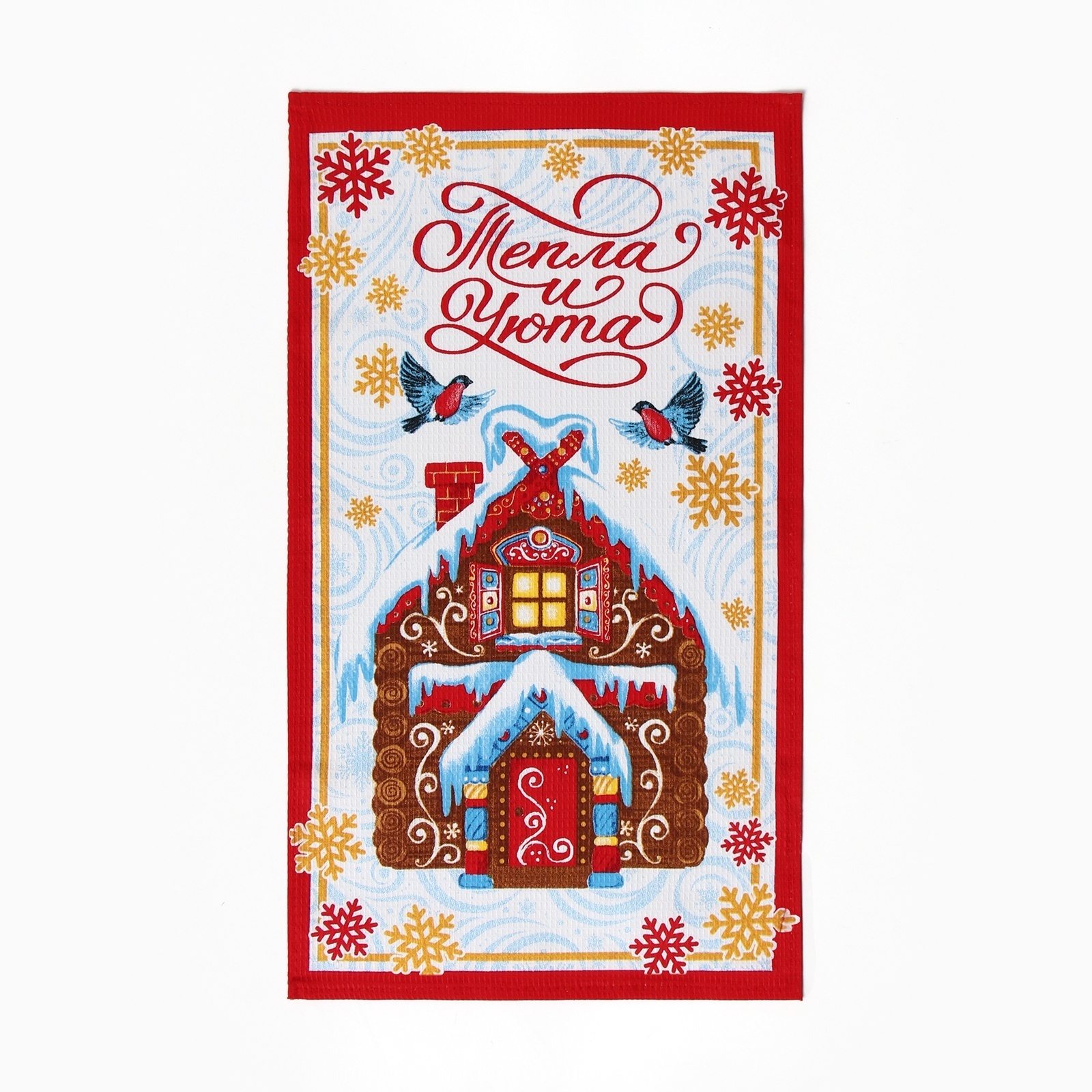 Набор новогодних полотенец доляна пряничный домик 35х60см-3штуки, 100% хлопок, вафельное полотно 162г/м2