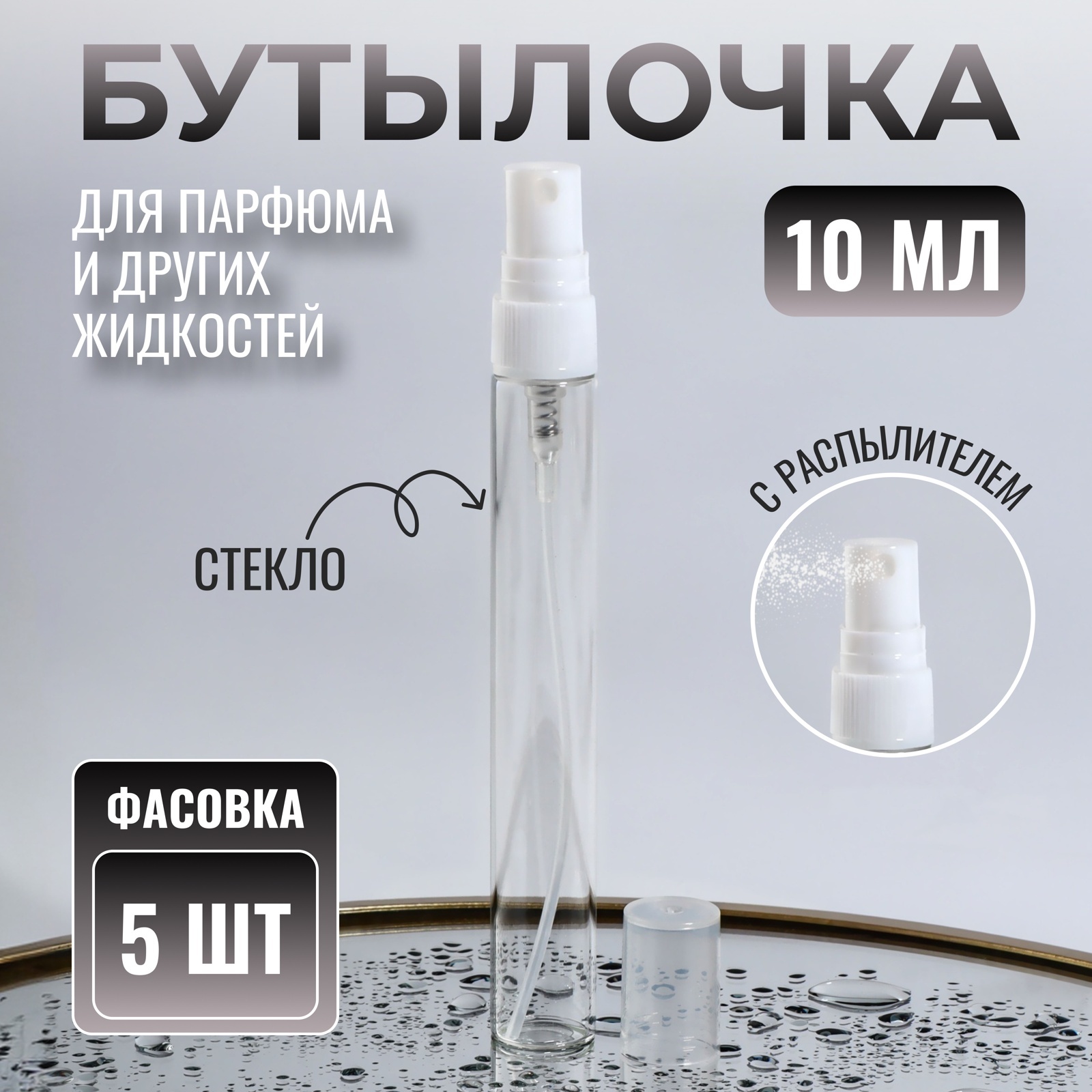 Бутылочка для хранения, с распылителем, 10 мл, фасовка – 5 шт, цвет белый