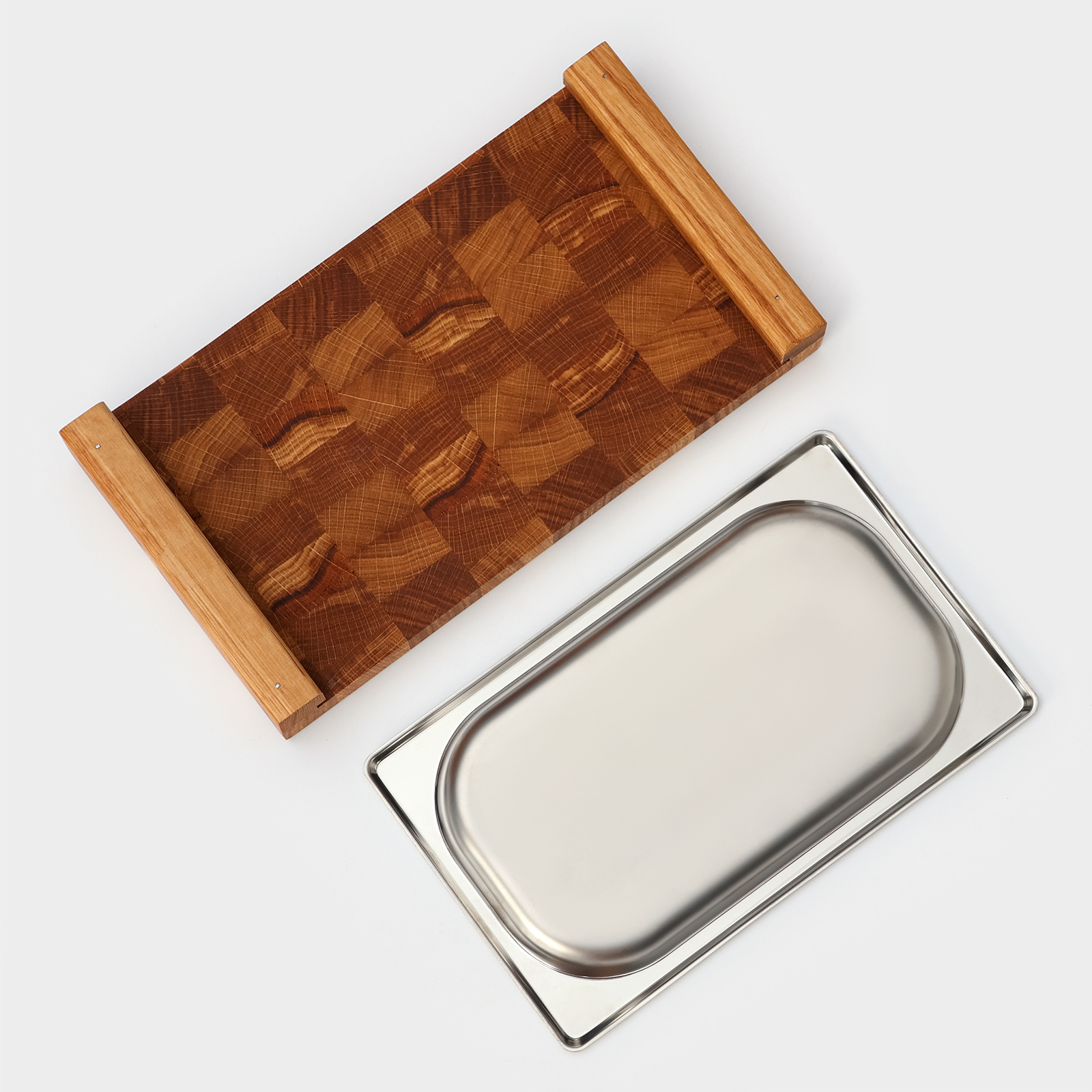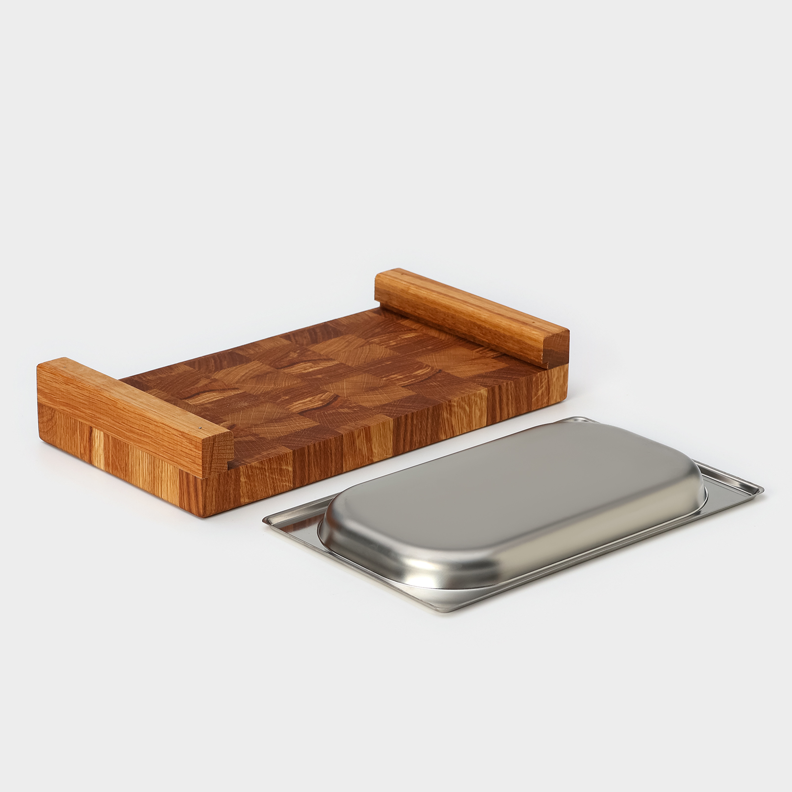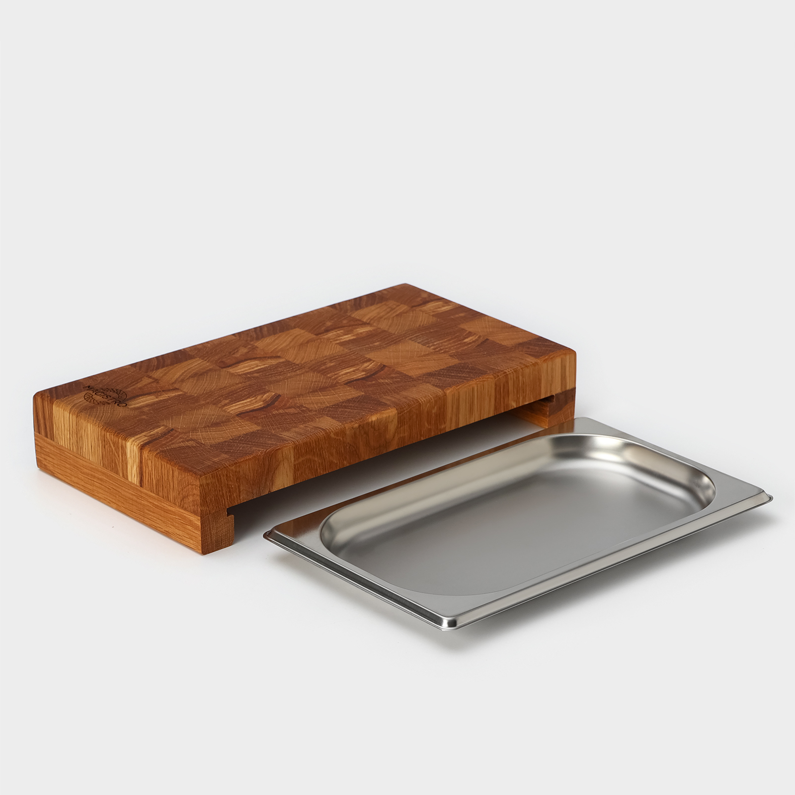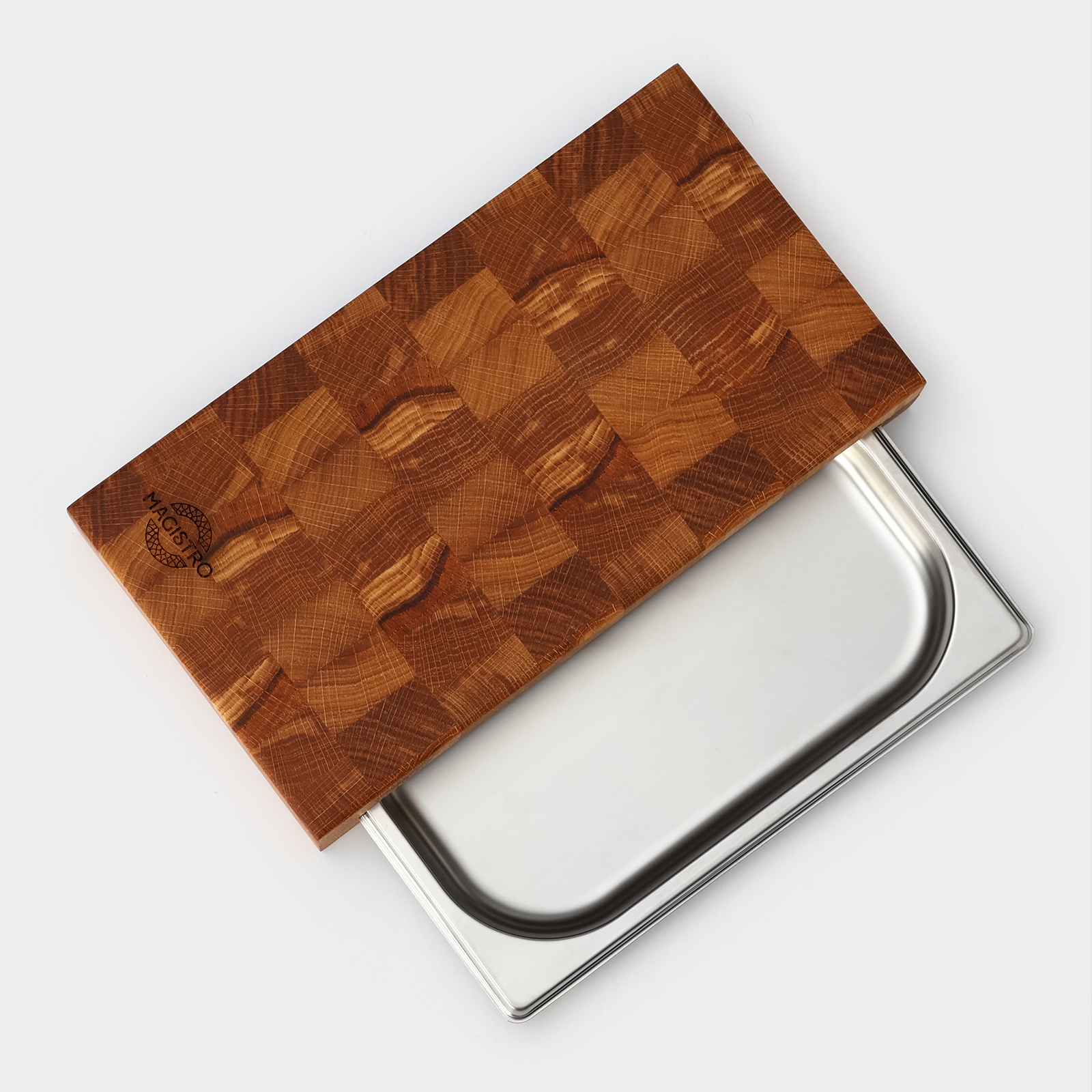 Доска разделочная торцевая Magistro, дуб, с металлической гастроёмкостью, 30,5x16,5x5 см, в крафтовой коробке
