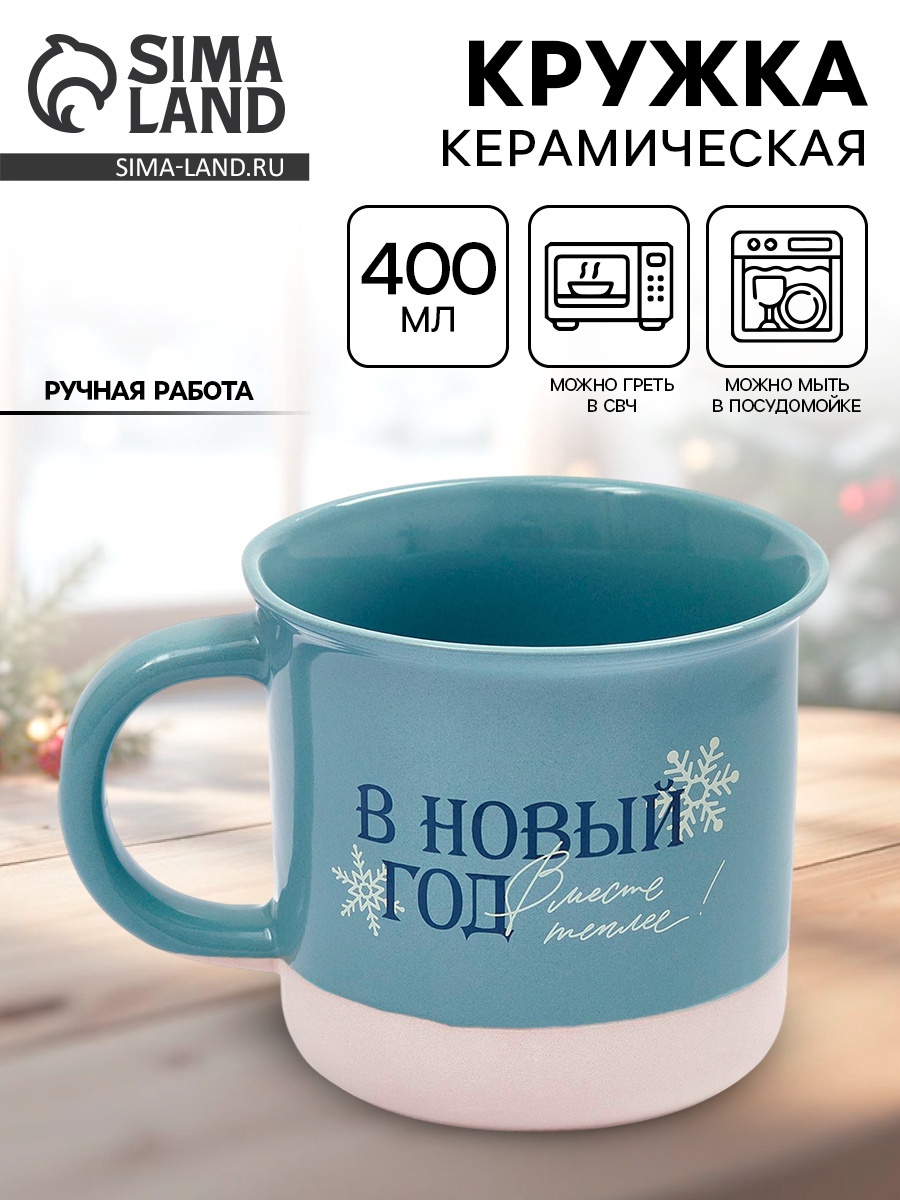 Кружка керамическая новогодняя «в новый год месте теплее», 400 мл, ручная работа