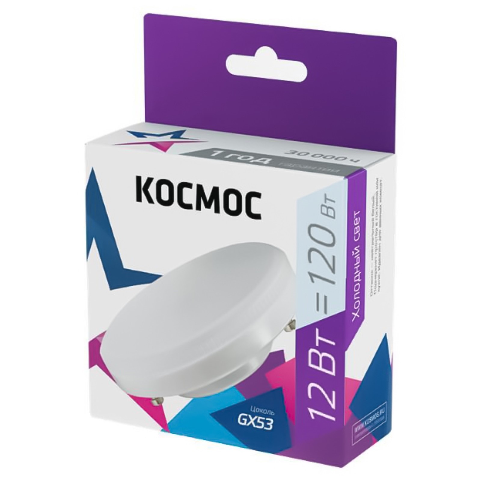 Лампа светодиодная космос, Gx53, 12 вт, 6500 к, свечение холодное белое