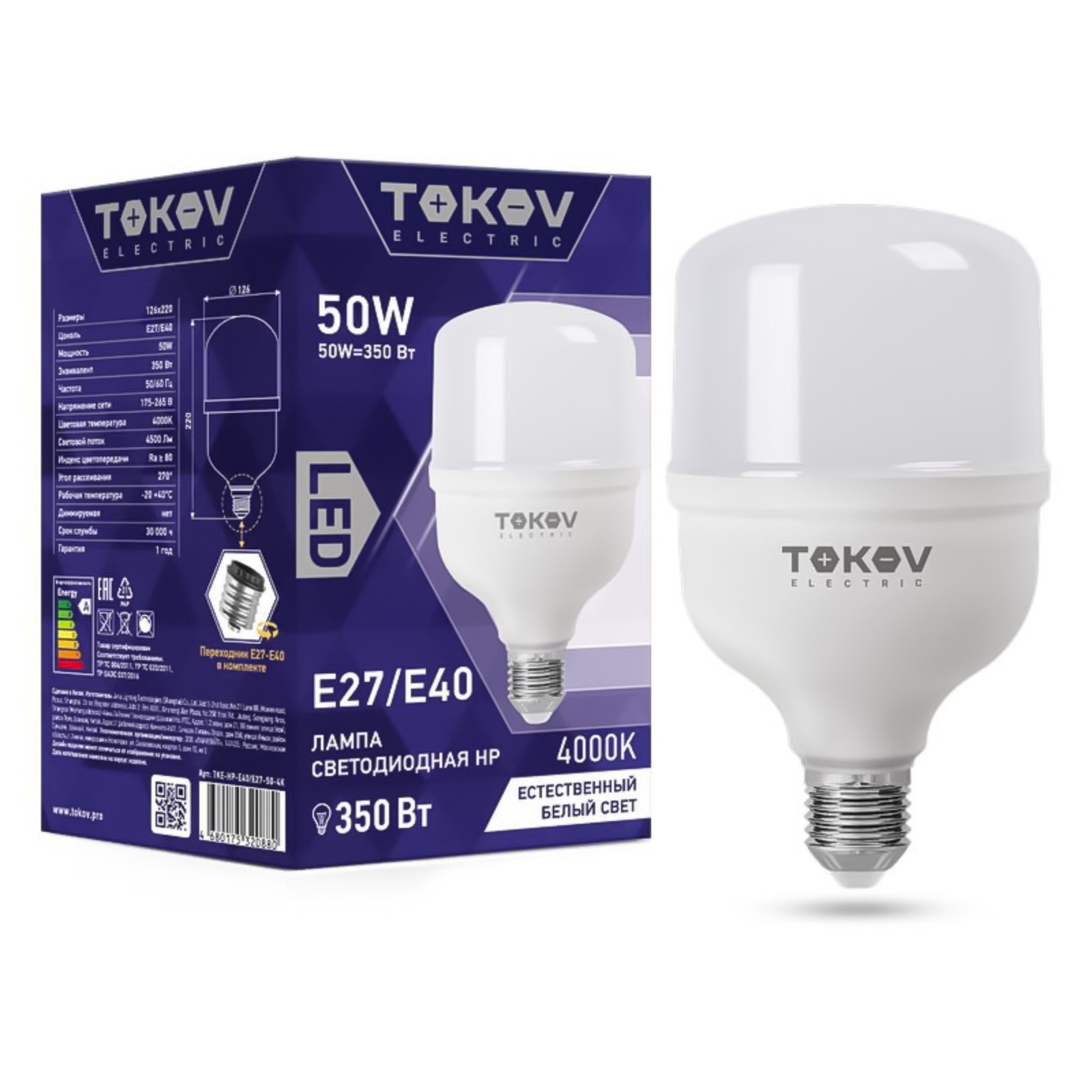 Лампа светодиодная Tokov Electric, E40/e27, 50 вт, 4000 к, свечение белое