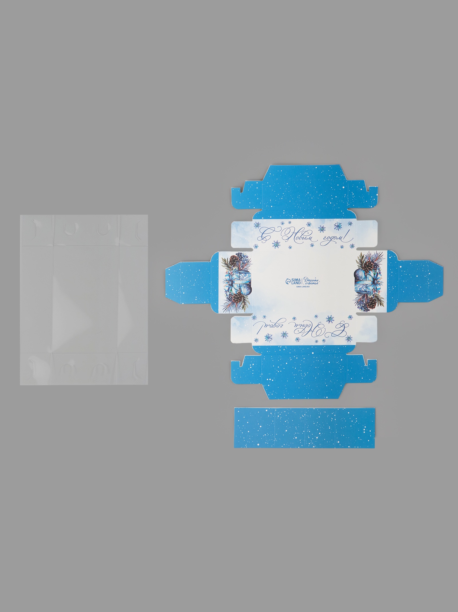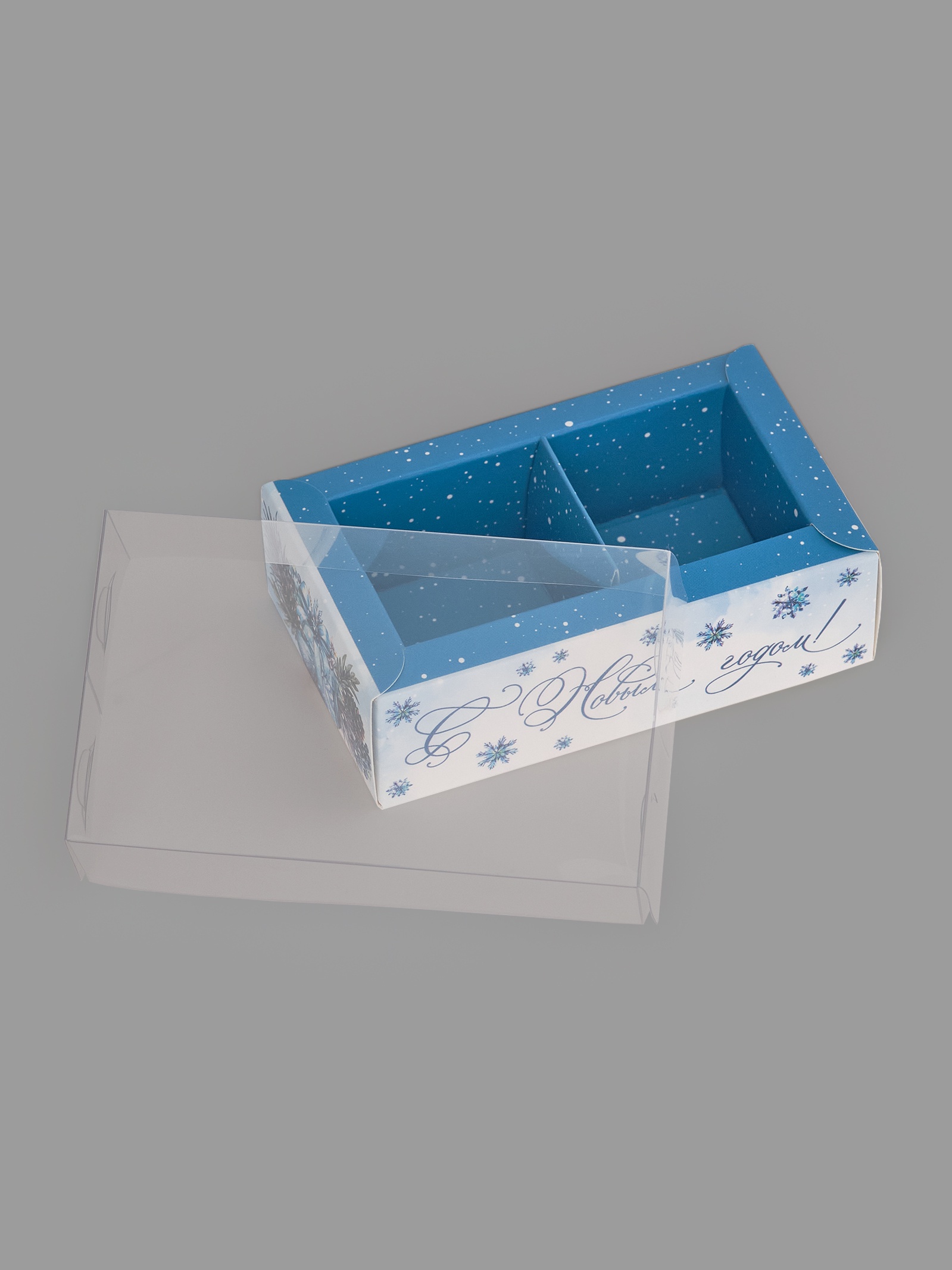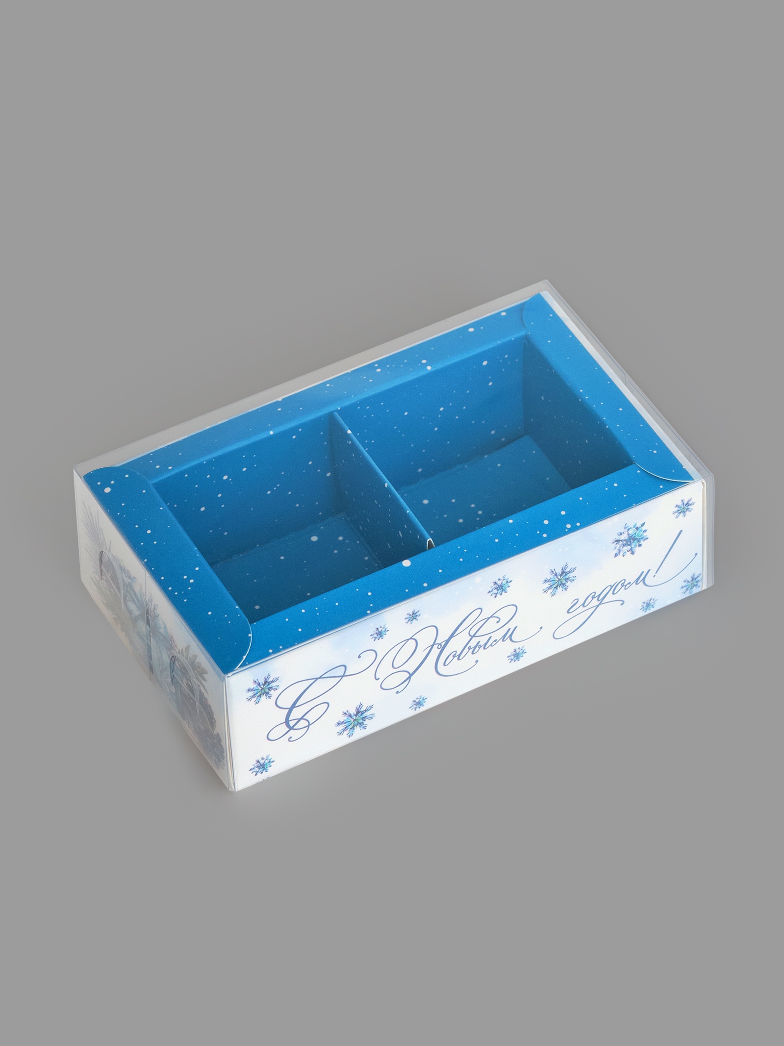 Коробка под 2 конфеты с ячейками «с новым годом!», 10 х 6 х 3 см. Цвет:Голубой|Форма:Прямоугольная|Плотность, г/м :250|Длина, см:10|Ширина, см:6|Высота, см:3|Количество ячеек:2|Тематика:Новогодняя|Символ года:Нет|Тематика праздника:Новый год|Материал:Картон|Вид:Складные коробки|Размер:Мини (до 10 см)|Страна:Китай  развернуть описание ▼