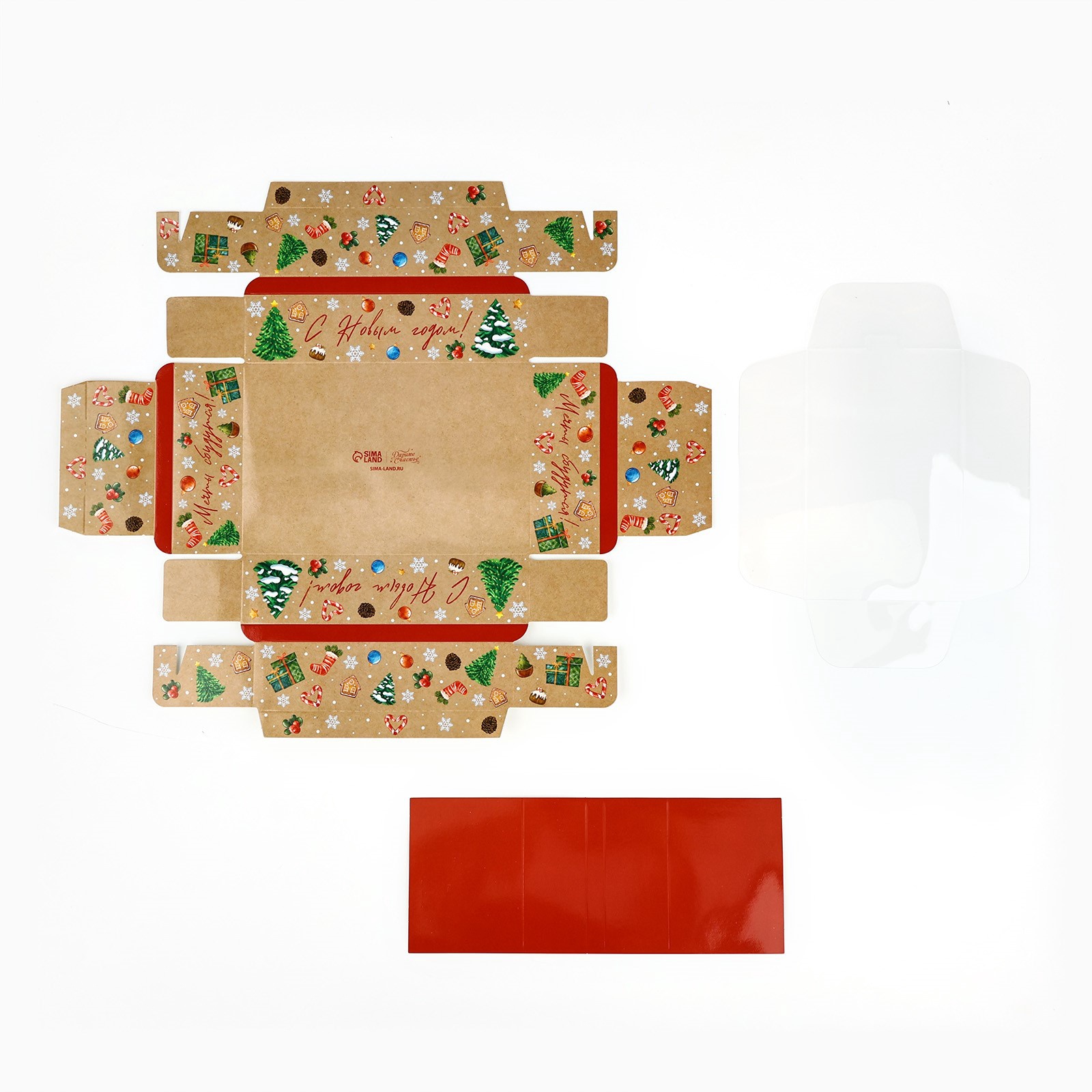 Коробка складная с пластиковой крышкой «с новым годом!», 16.5 х 11 х 4 см. Цвет:Красный|Форма:Прямоугольная|Плотность, г/м :250|Длина, см:16.5|Ширина, см:11|Высота, см:4|Тематика:Новогодняя|Символ года:Нет|Тематика праздника:Новый год|Материал:Картон|Материал:Пластик|Вид:Складные коробки|Размер:Малый (11-17 см)|Окошко:Нет|Крышка-дно:Да|Страна:Китай  развернуть описание ▼