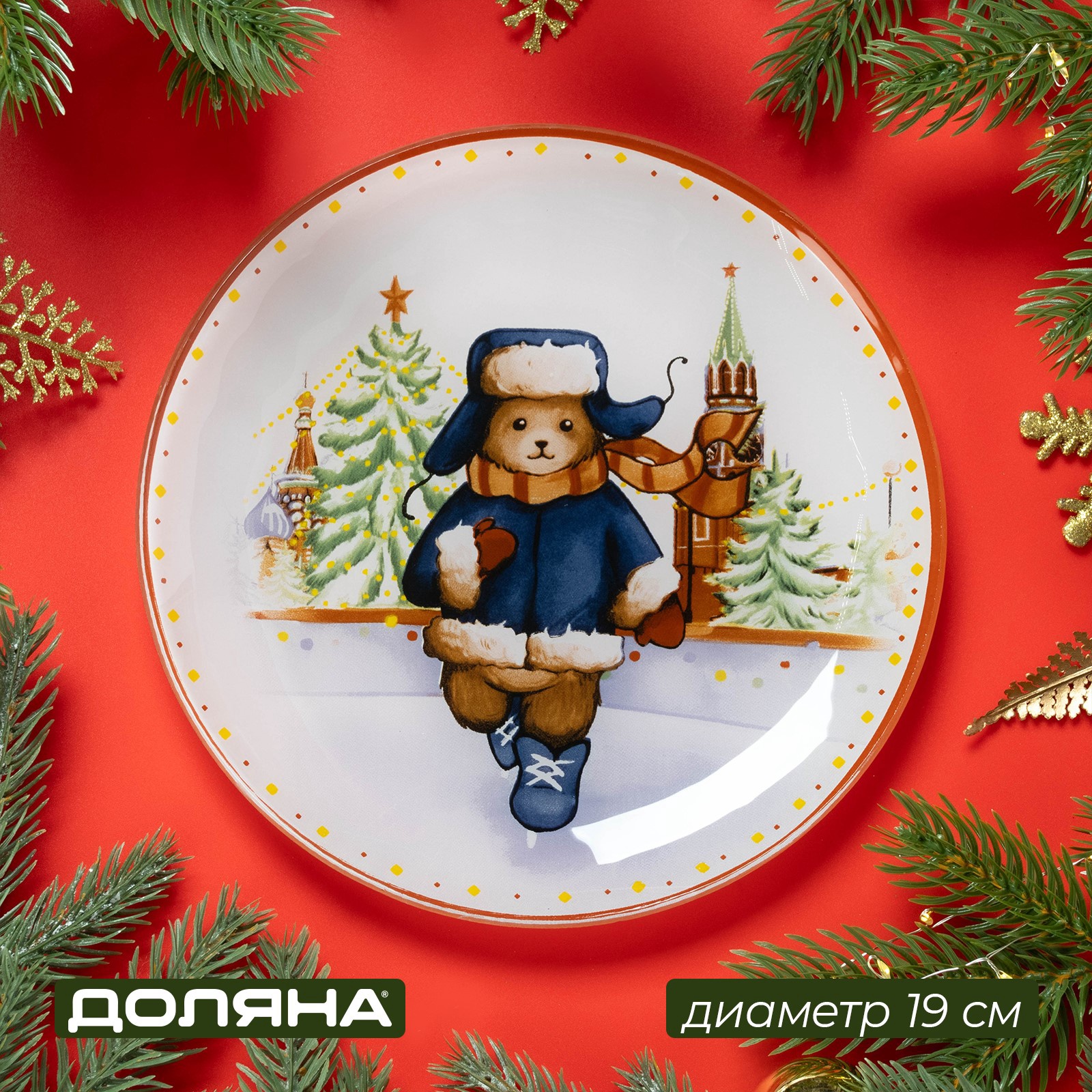 Блюдо новогоднее сервировочное стеклянное «московский мишка», D=19 см