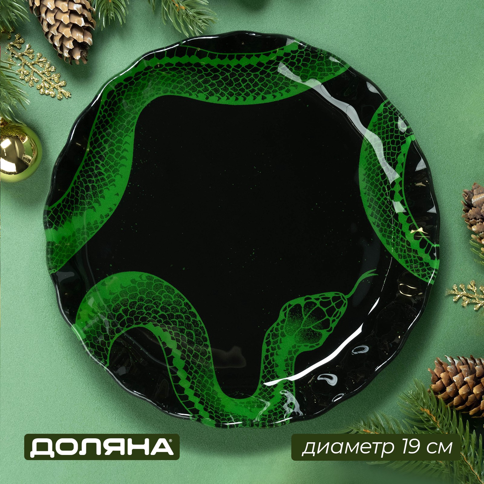 Блюдо сервировочное стеклянное «новогодний змей», D=19 см