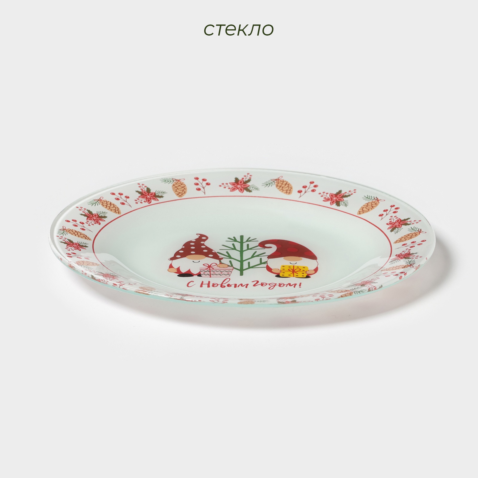 Десертная тарелка доляна «праздничные гномы», D=20 см, стекло, белая