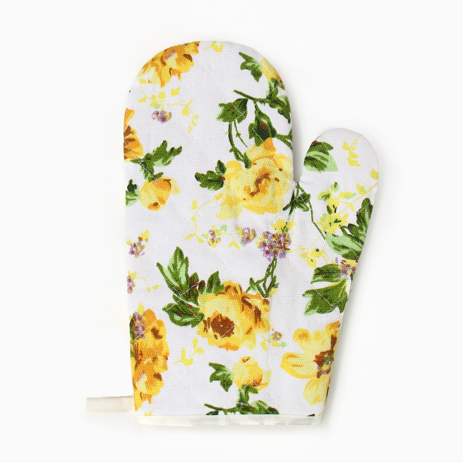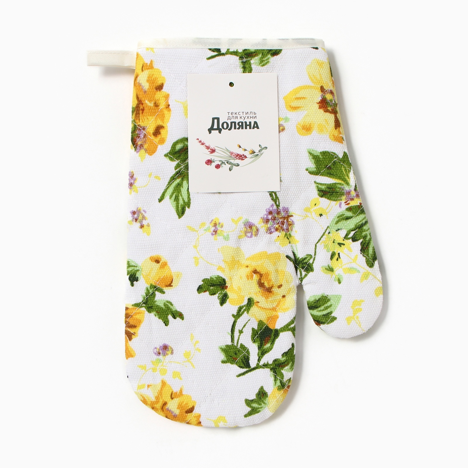 Варежка-прихватка доляна цветы, цвет жёлтый, 26*16см, 100%хл