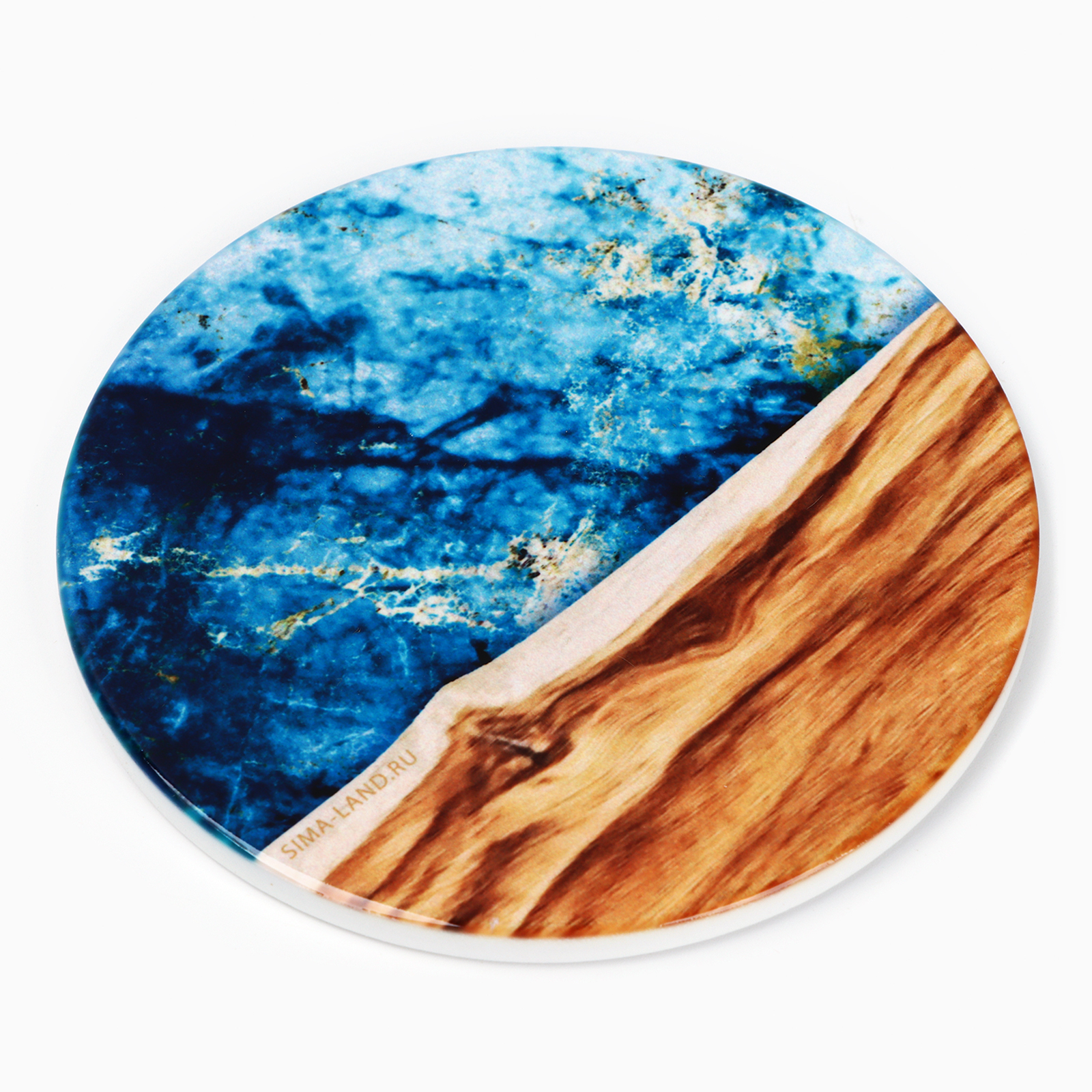 Подставка под горячее «море», d=10.8 см. Набор:Нет|Цвет:Коричневый|Цвет:Голубой|Размер, см:11 х 11|Рисунок:Да|Тематика праздника:Универсальная тематика|Материал:Керамика|Материал:Пробка|Можно мыть в посудомоечной машине:Нет|Страна:Китай  развернуть описание ▼