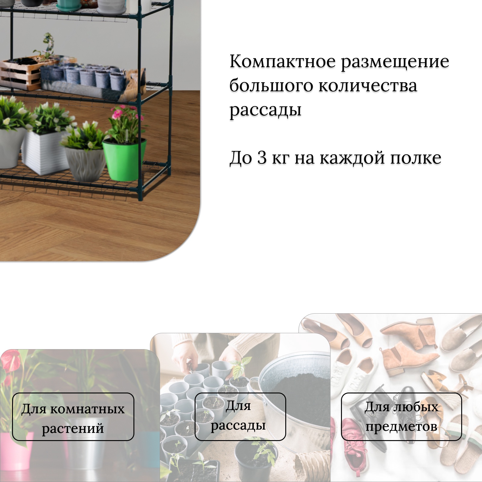 Стеллаж для рассады, 3 полки, 110 40 65 см, металлический каркас D=12 мм, без чехла, Greengo