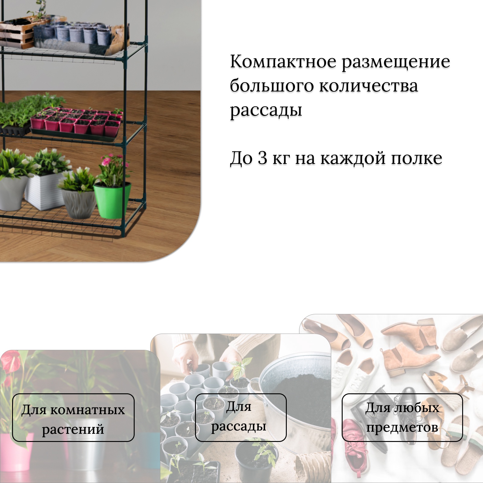 Стеллаж для рассады, 4 полки, 160 40 65 см, металлический каркас D=12 мм, без чехла, Greengo