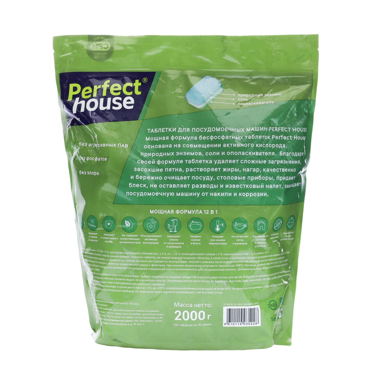 Таблетки для посудомоечной машины perfect house all in one power 12в1, 100 шт.