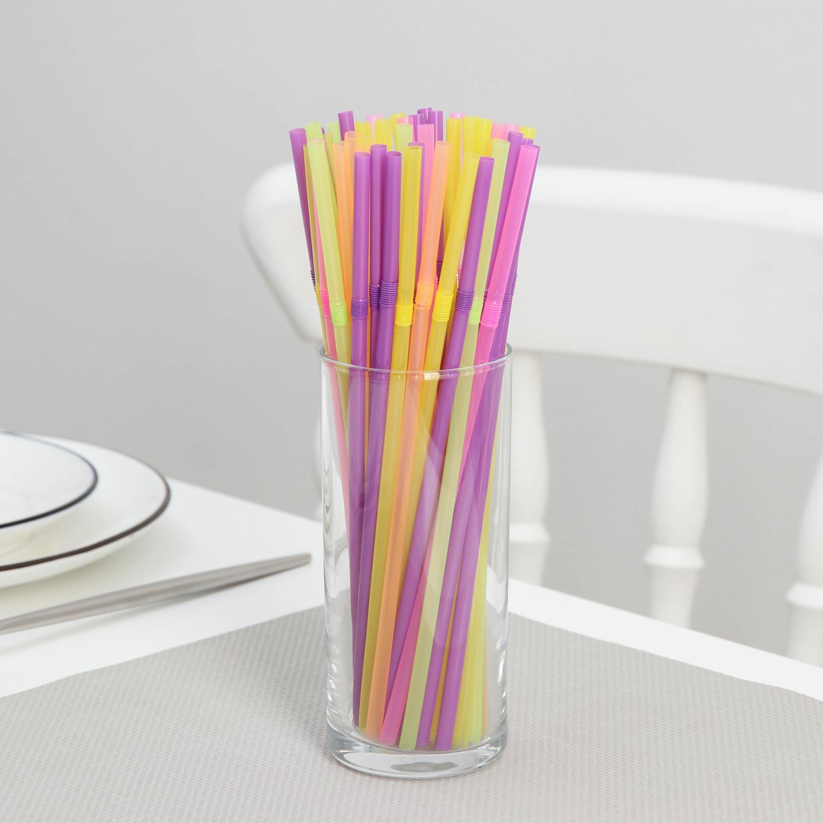 Трубочки одноразовые для напитков, 21 см, D=5 мм, 50 шт, с гофрой, цвет микс