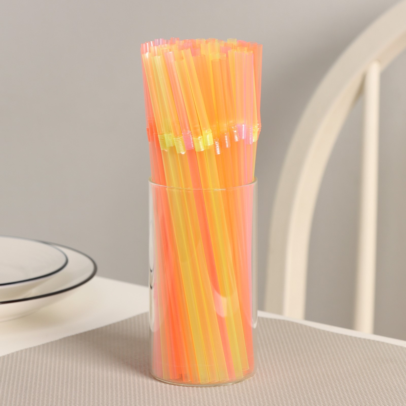 Трубочки одноразовые для напитков, 21 см, D=5 мм, 100 шт, с гофрой, цвет микс