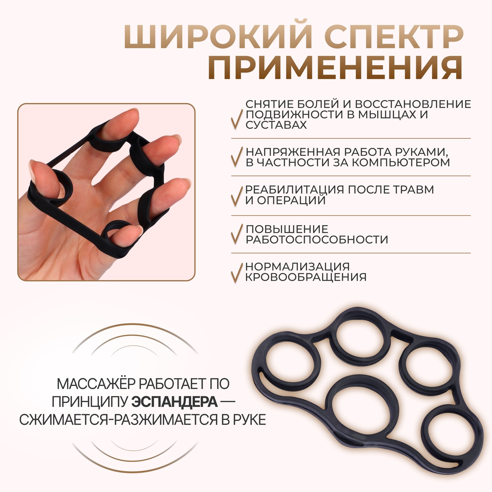 Массажёр для разработки рук и пальцев, 8 X 4 X 1,5 см, цвет чёрный