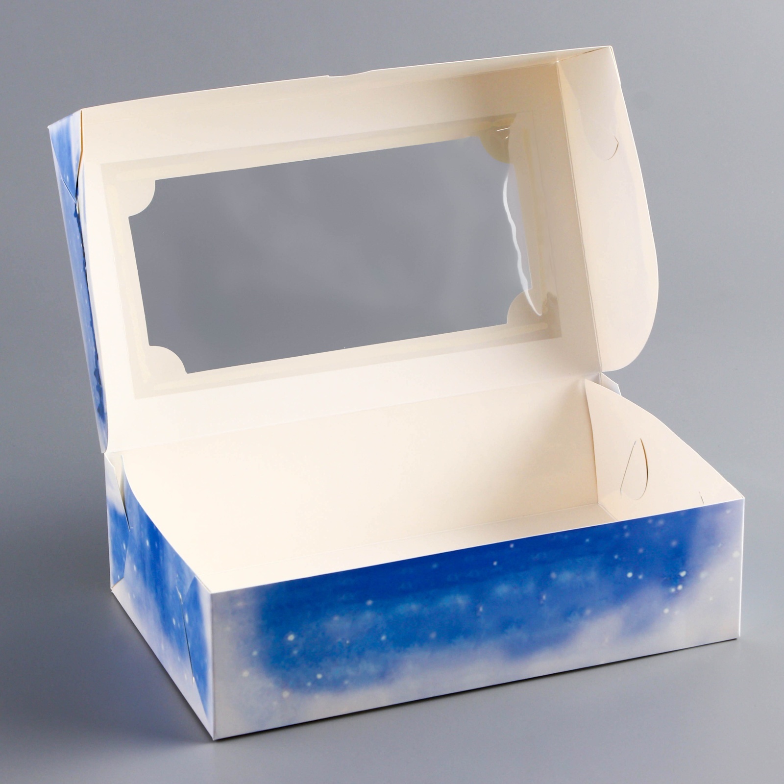 Коробка новогодняя складная с окном «с новым годом», 25 15 7 см. Новогодняя складная коробка с окном размером 25 х 15 х 7 см — это идеальная упаковка для праздничных подарков и угощений. Изготовленная из прочного картона, коробка украшена ярким зимним дизайном с новогодними мотивами, создавая атмосферу праздника. Прозрачное окошко на крышке позволяет эффектно продемонстрировать содержимое — будь то домашние сладости, выпечка, сувениры или небольшие подарки — без необходимости открывать коробку. Складная конструкция делает коробку удобной для хранения и быстрой сборки, а её размеры обеспечивают вместительность для различных предметов. Эта коробка станет прекрасным выбором для тех, кто хочет преподнести подарки или лакомства с заботой и в праздничной упаковке, привнося новогоднее настроение в каждый подарок. Цвет:Голубой|Форма:Прямоугольная|Плотность, г/м :270|Длина, см:25|Ширина, см:15|Высота, см:7|Тематика:Новогодняя|Символ года:Нет|Тематика праздника:Новый год|Материал:Картон|Вид:Складные коробки|Размер:Средний (18-24 см)|Окошко:Да|Крышка-дно:Нет|Страна:Китай  развернуть описание ▼