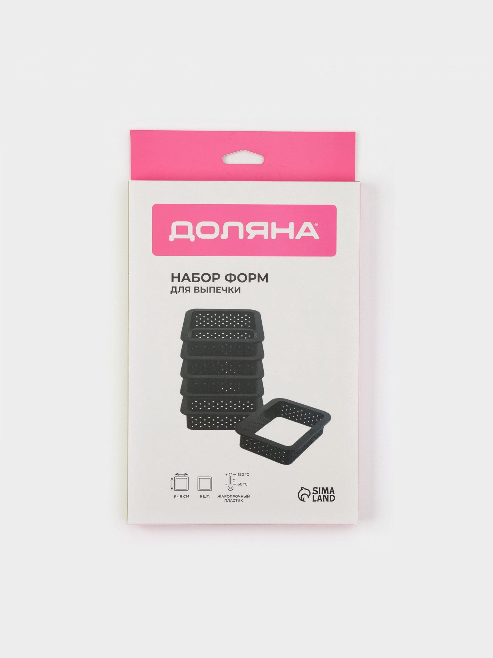 Формы для выпечки перфорированные доляна «квадрат», набор 6 шт., пластик, 8 2 см, чёрные