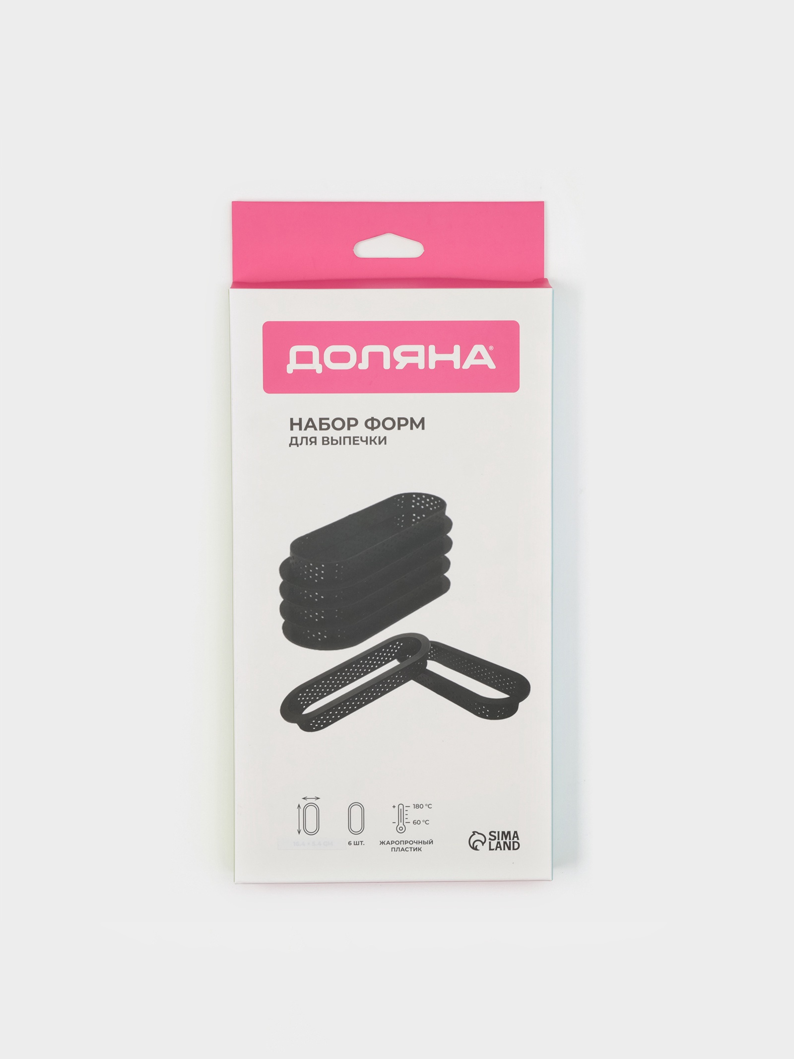 Формы для выпечки перфорированные доляна «овал», набор 6 шт., пластик, 14.6 5.4 2 см, чёрные. Раскройте секреты идеальной выпечки с перфорированными формами Доляна! Представьте себе: хрустящие песочные коржи, тающие во рту тарталетки, и все это – идеально пропеченное, без намека на сырость. С набором перфорированных овальных форм Доляна ваши кулинарные фантазии станут реальностью. Шесть изящных формочек откроют новые горизонты в кондитерском искусстве. Почему эти формы станут вашими фаворитами: Идеальная перфорация: равномерное распределение тепла обеспечивает хрустящую и хорошо пропеченную основу для ваших десертов.Овальная форма: придаст вашим творениям изысканный и элегантный вид.Набор из 6 штук: создавайте не только торты и пироги, но и аппетитные тарталетки, порционные пирожные и многое другое.Жаропрочный пластик: формы легкие, не деформируются и прослужат вам долгое время.Простота использования: легко извлекать готовые изделия, не нужно никаких специальных приспособлений.Легкий уход: можно мыть в посудомоечной машине, что экономит ваше время и силы.Стильный дизайн: черный цвет форм подчеркнет профессионализм ваших кулинарных творений.С этими перфорированными формами выпечка станет настоящим шедевром. Позвольте себе творить, а Доляна позаботится об остальном! Набор:Да|Цвет:Чёрный|Фасовка, шт.:1|Высота стенки, см:2|В наборе, шт.:6|Крышка:Нет|Тематика праздника:Универсальная тематика|Материал:Пластик|Тип покрытия:Без покрытия|Ячейки:Нет|Тип формы:Для коржей|Разъёмная форма:Нет|Можно мыть в посудомоечной машине:Да|Перфорированные:Да|Страна:Китай  развернуть описание ▼