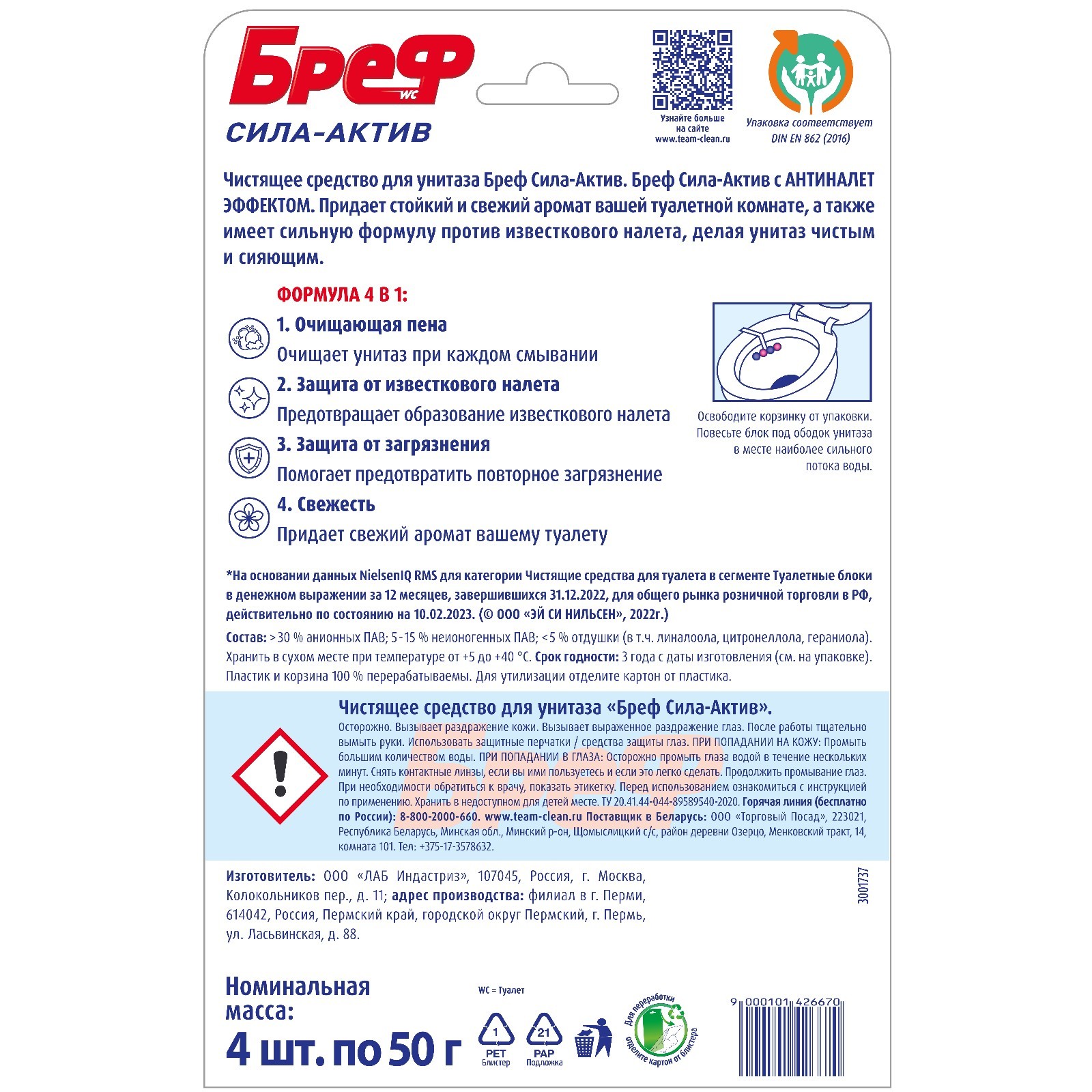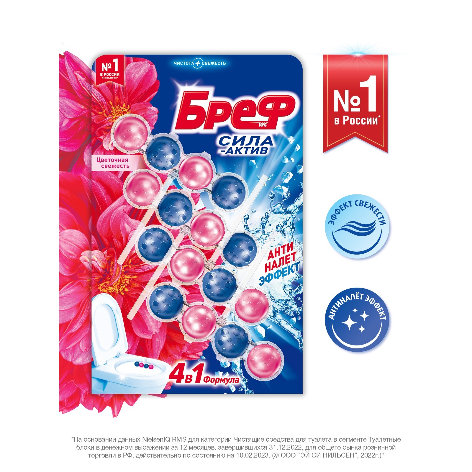 Блок для унитаза Bref сила актив "цветочная свежесть", 4 шт х 50 гр
