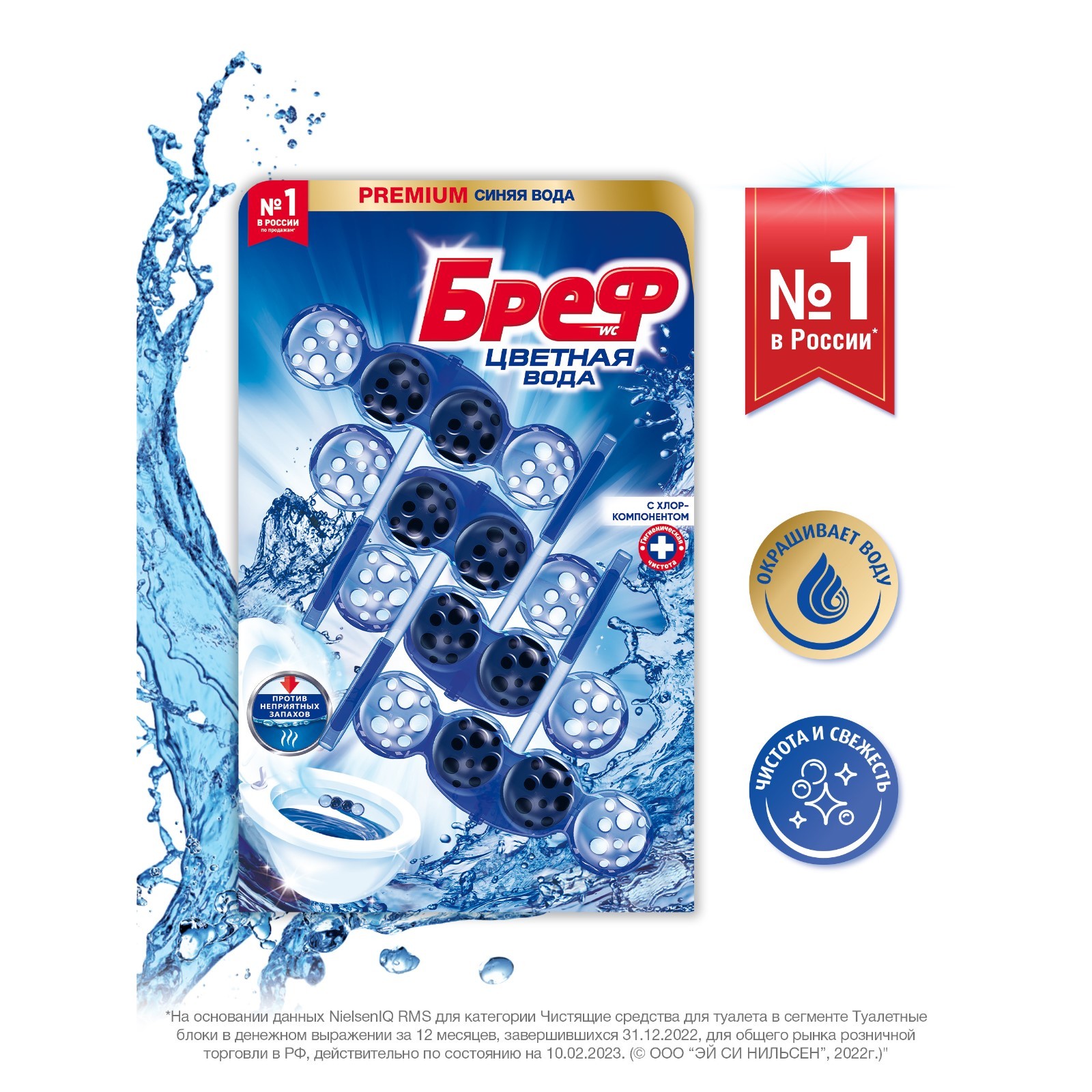 Блок для унитаза Bref цветная вода с хлор-компонентом, 4 шт х 50 гр