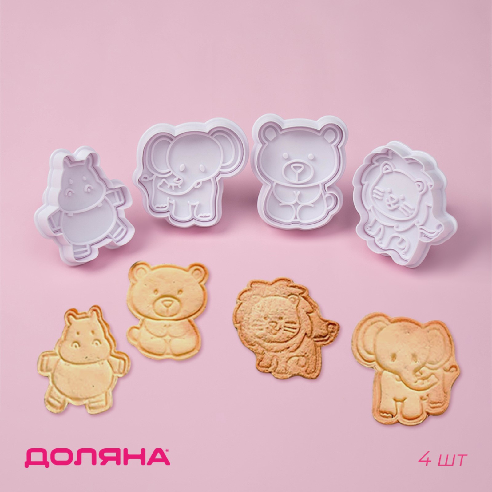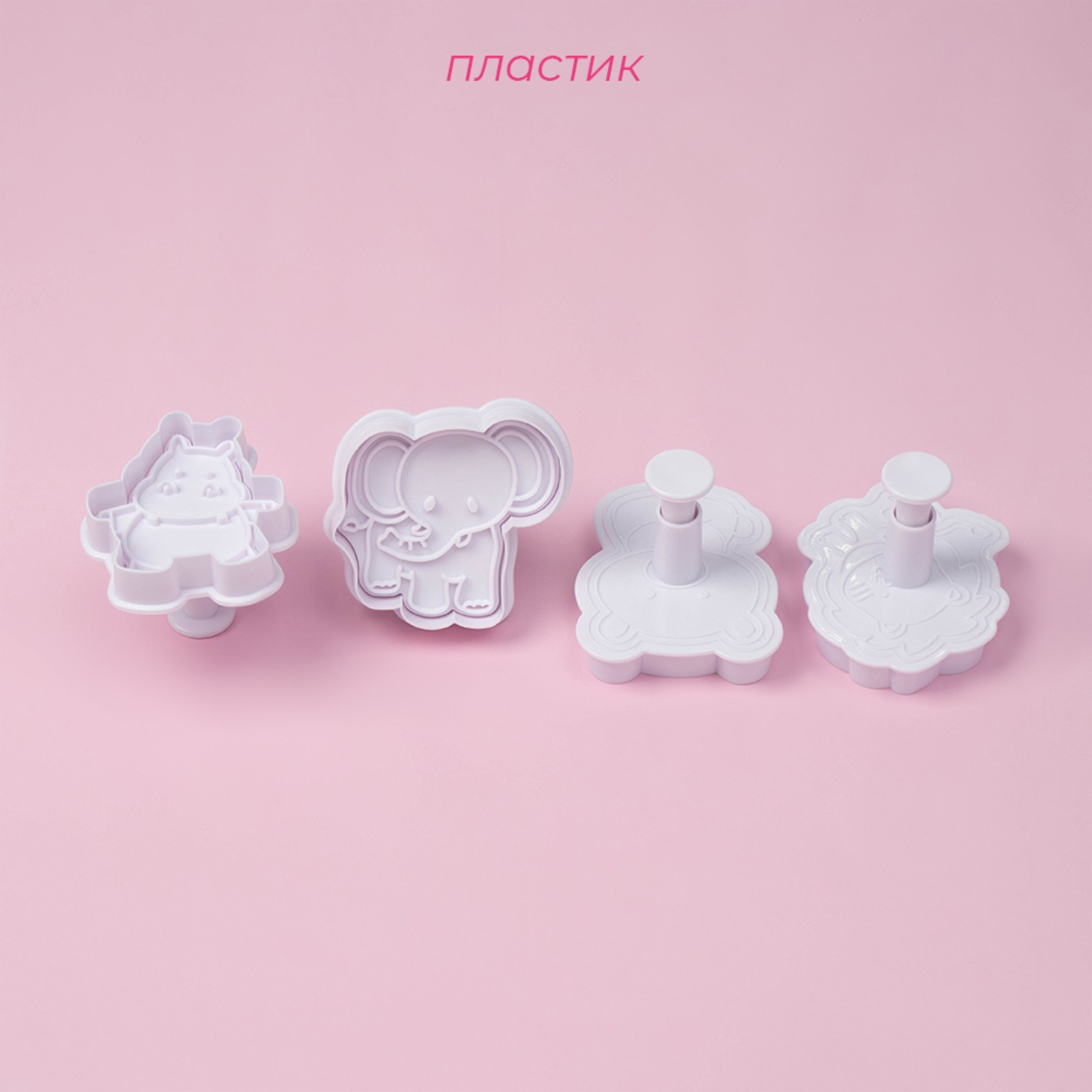 Плунжеры кондитерские доляна «зверята», для теста, набор 4 шт., пластик, белые. Набор плунжеров Доляна “Зверята”: пусть ваши сладкие шедевры заговорят! Набор плунжеров Доляна “Зверята” - это отличная идея для того, чтобы придать вашим кулинарным шедеврам забавные и милые формы. Преимущества: В набор входят 4 формы с изображением бегемота, слона, медведя и льва, что позволит вам создать разнообразные фигурки из теста.Изготовлен из прочного пластика, который не требует особого ухода.Белый цвет делает плунжеры универсальными и позволяет использовать их с разными цветами теста.Сделайте свою кулинарию еще более интересной и веселой! Набор выемок Доляна “Зверята” - отличная идея для подарка любителям готовить и детям Набор:Да|В наборе, шт.:4|Материал:Пластик|Тематика:Животный мир|Можно мыть в посудомоечной машине:Нет|Страна:Китай  развернуть описание ▼