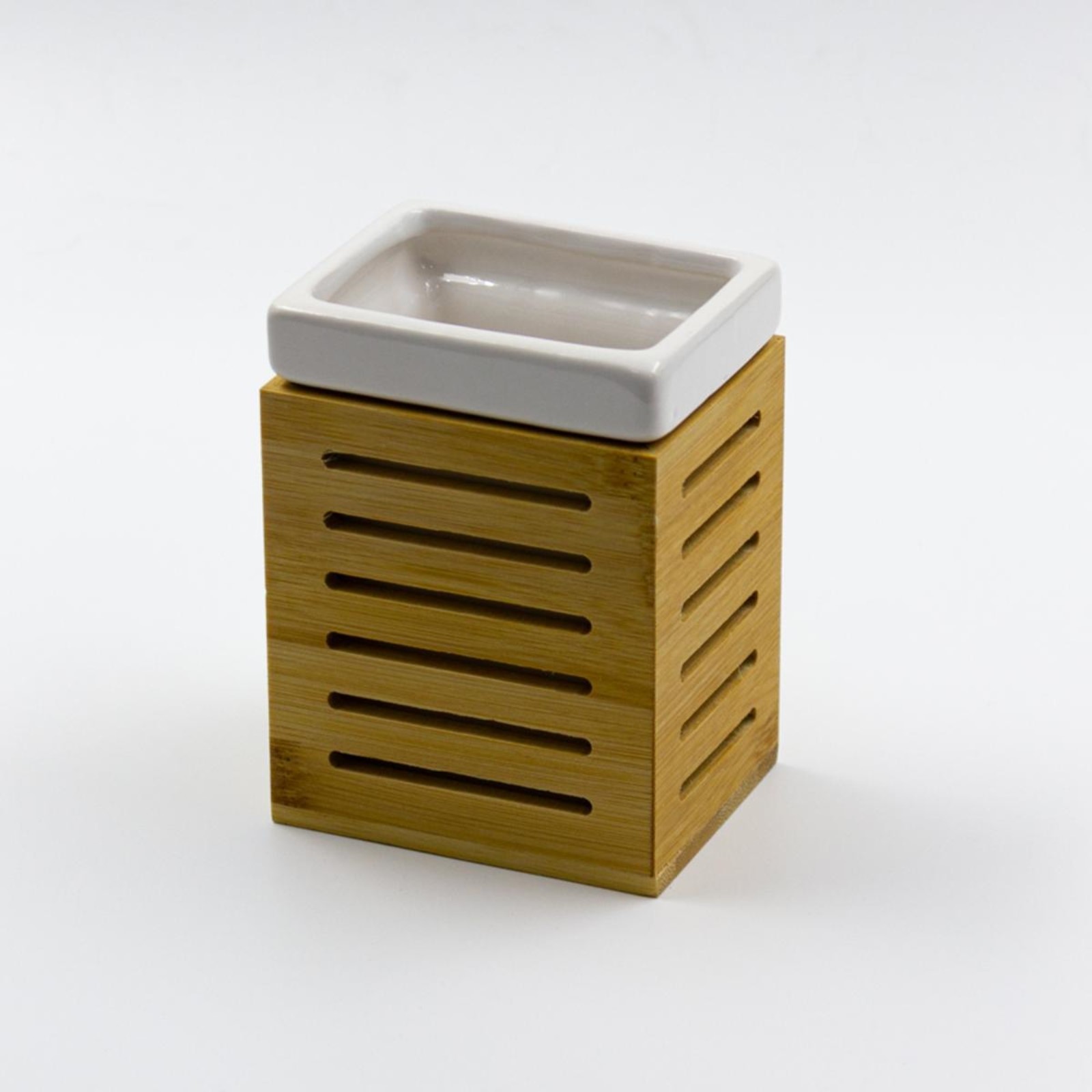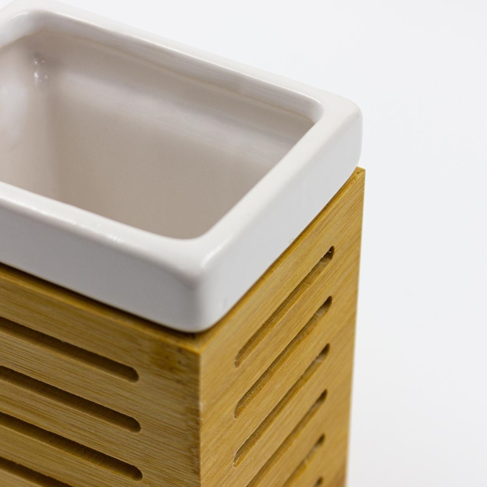 Стакан для зубных щёток Joy Home, керамика, белый с рамкой из бамбука