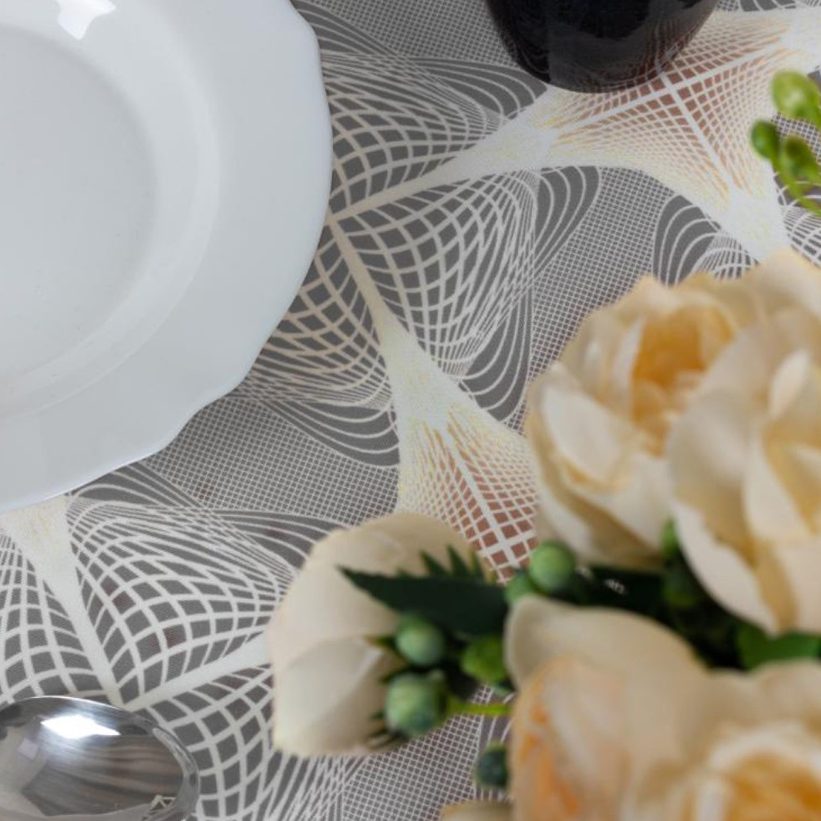 Клеёнка Estella, Dasch, «калейдоскоп серый», 140 см