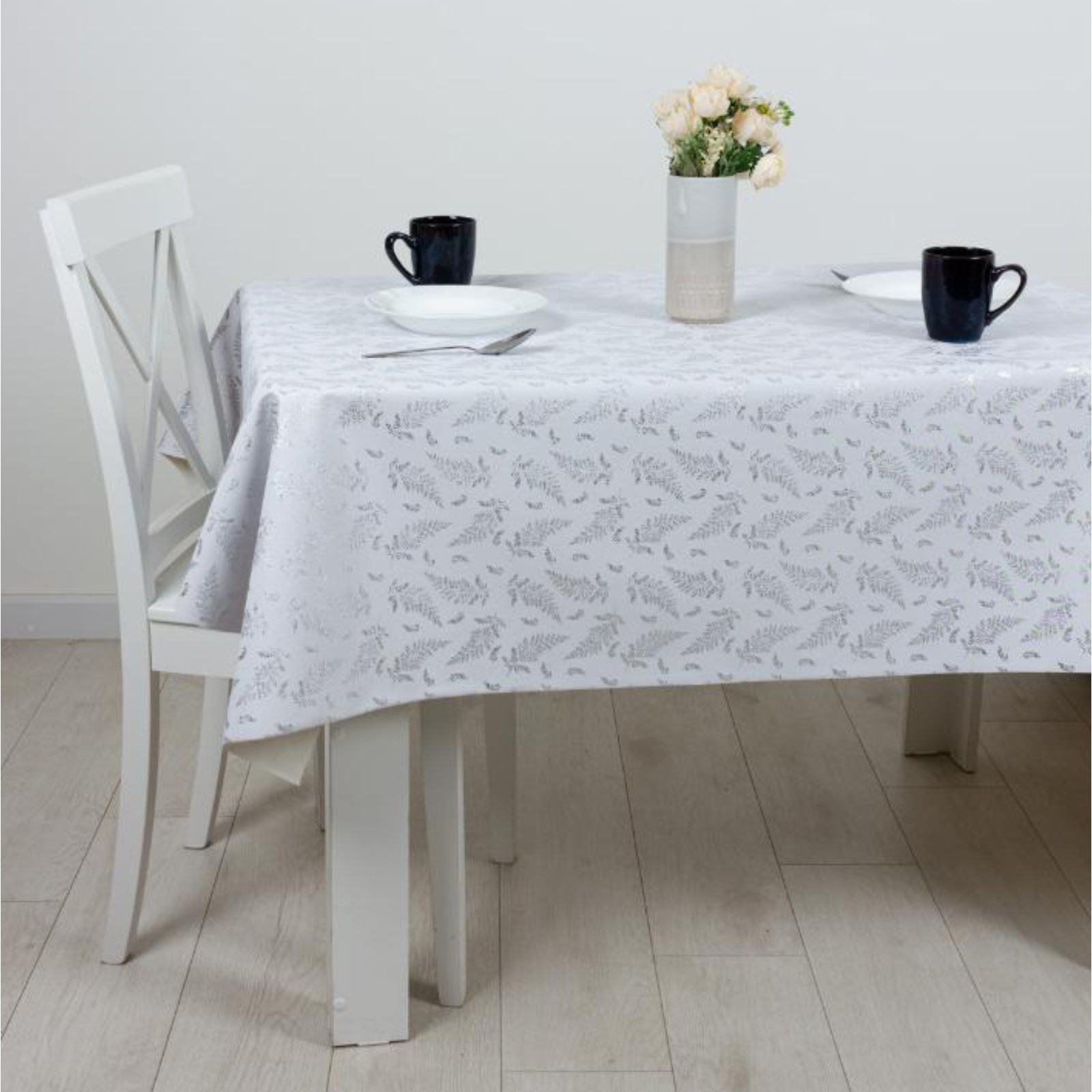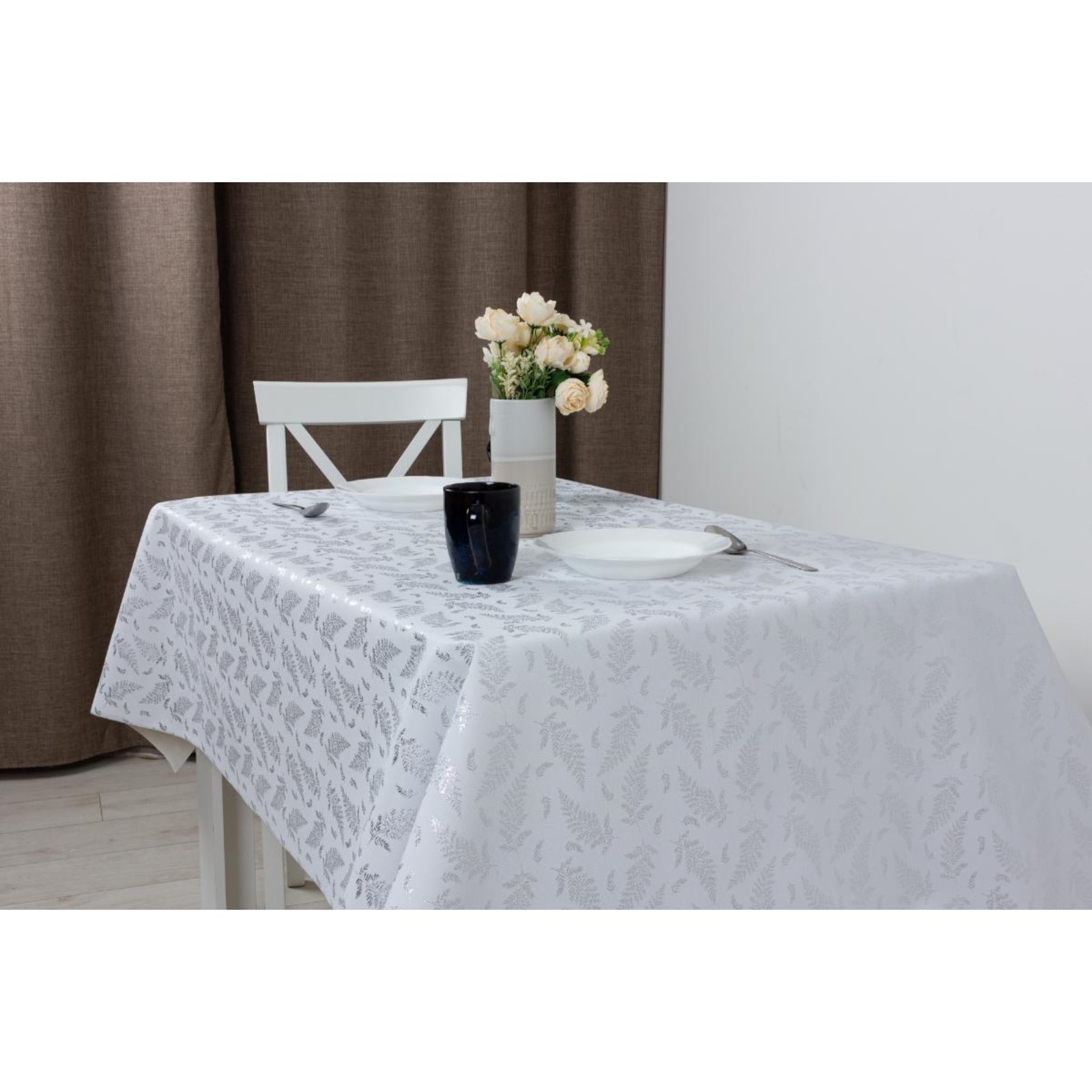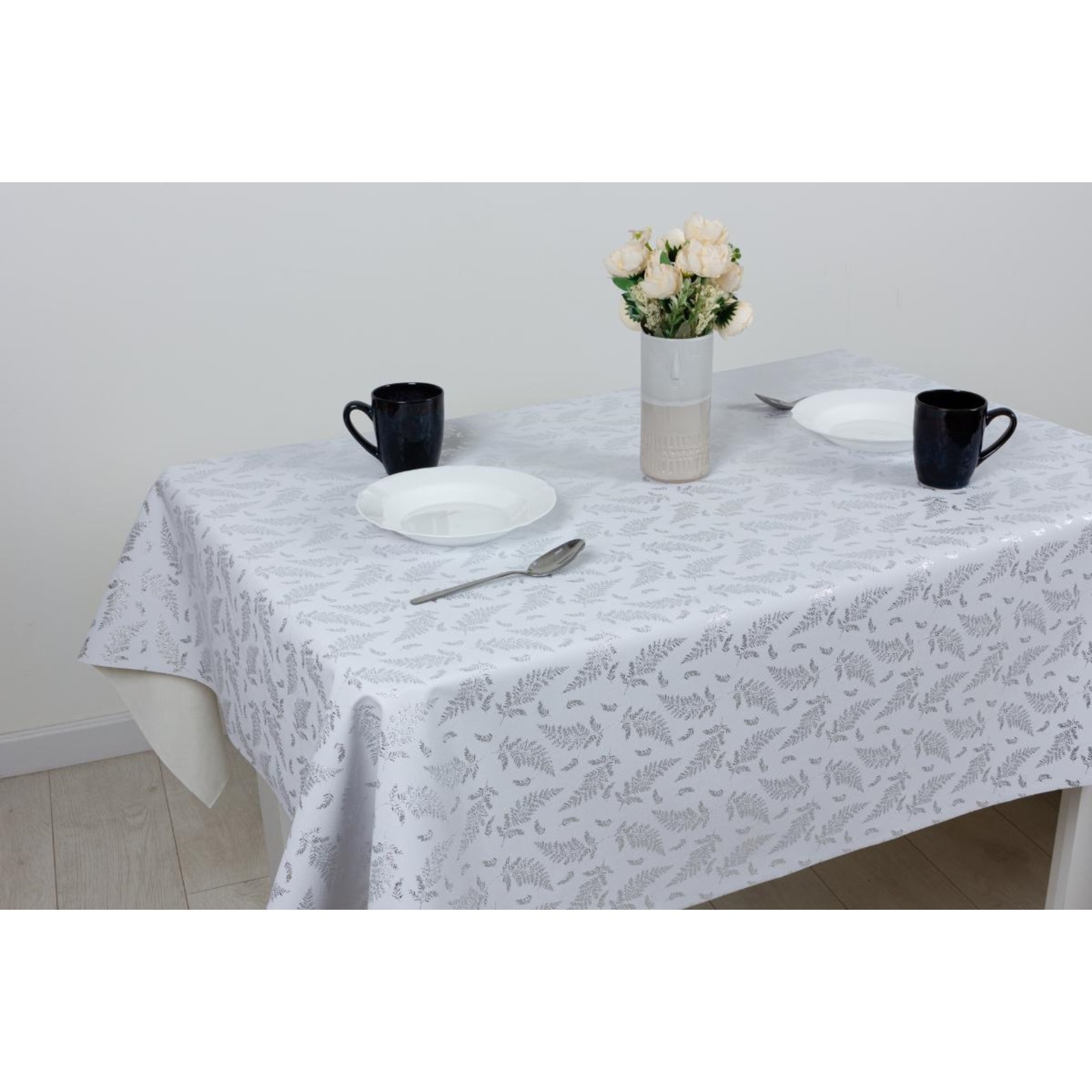 Клеёнка Pu Shine, Dasch, «папоротник серебро на белом», 140 см