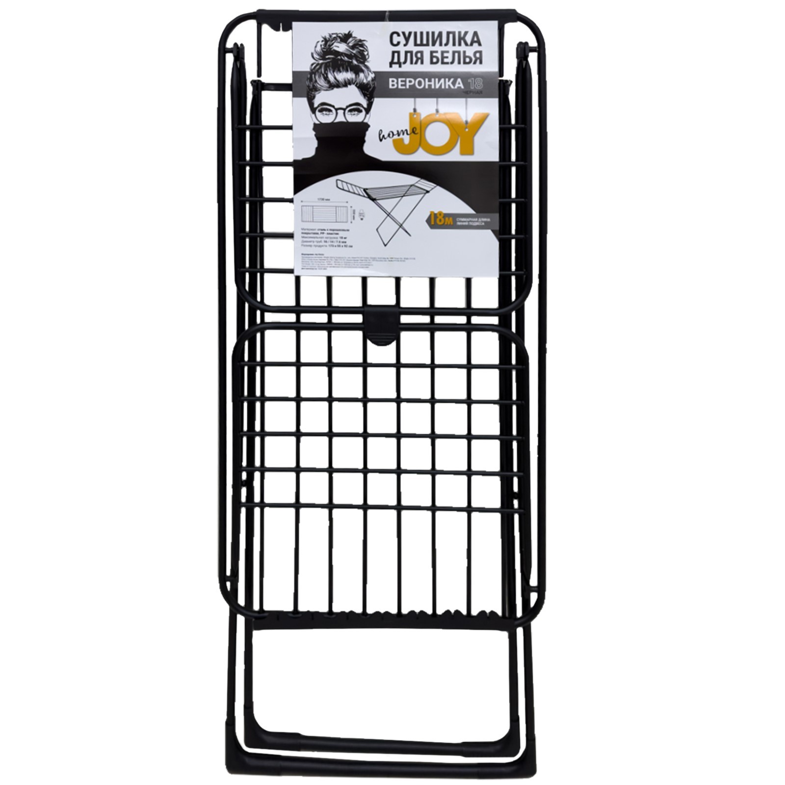 Сушилка «вероника 18», joy home, до 18 кг, 18 м, чёрный. Цвет: Чёрный Maксимальная нагрузка, кг: 18 Рабочая длина, м: 18 Материал: Сталь Тип: Напольная  развернуть описание ▼
