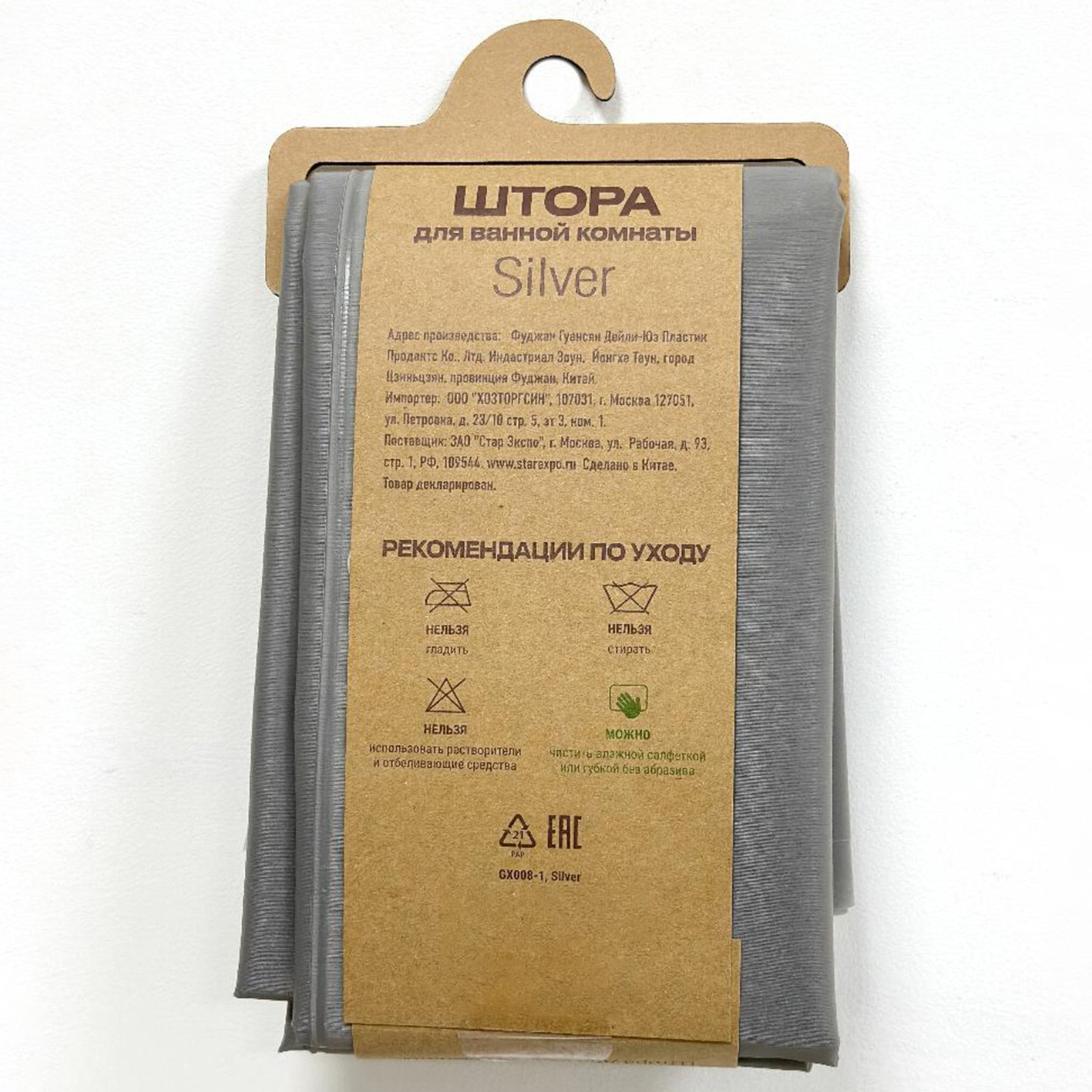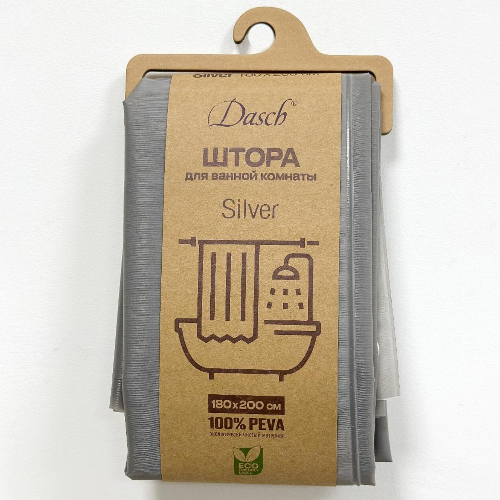 Штора для ванной Dasch, Peva, Silver, 180х200 см