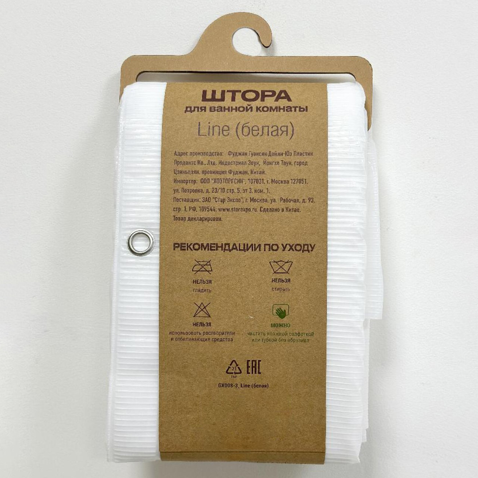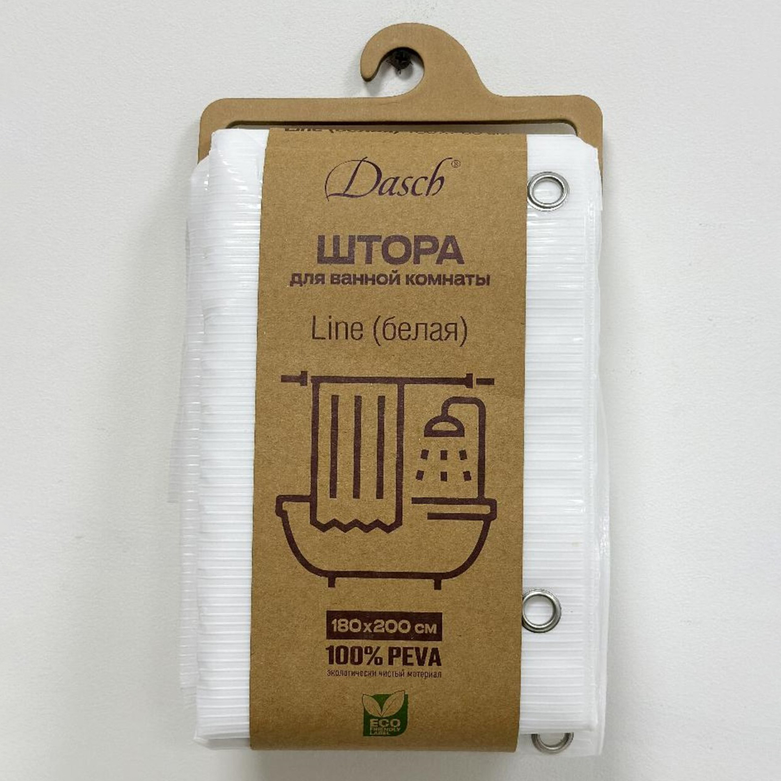 Штора для ванной Dasch, Peva, Line, 180х200 см, белая